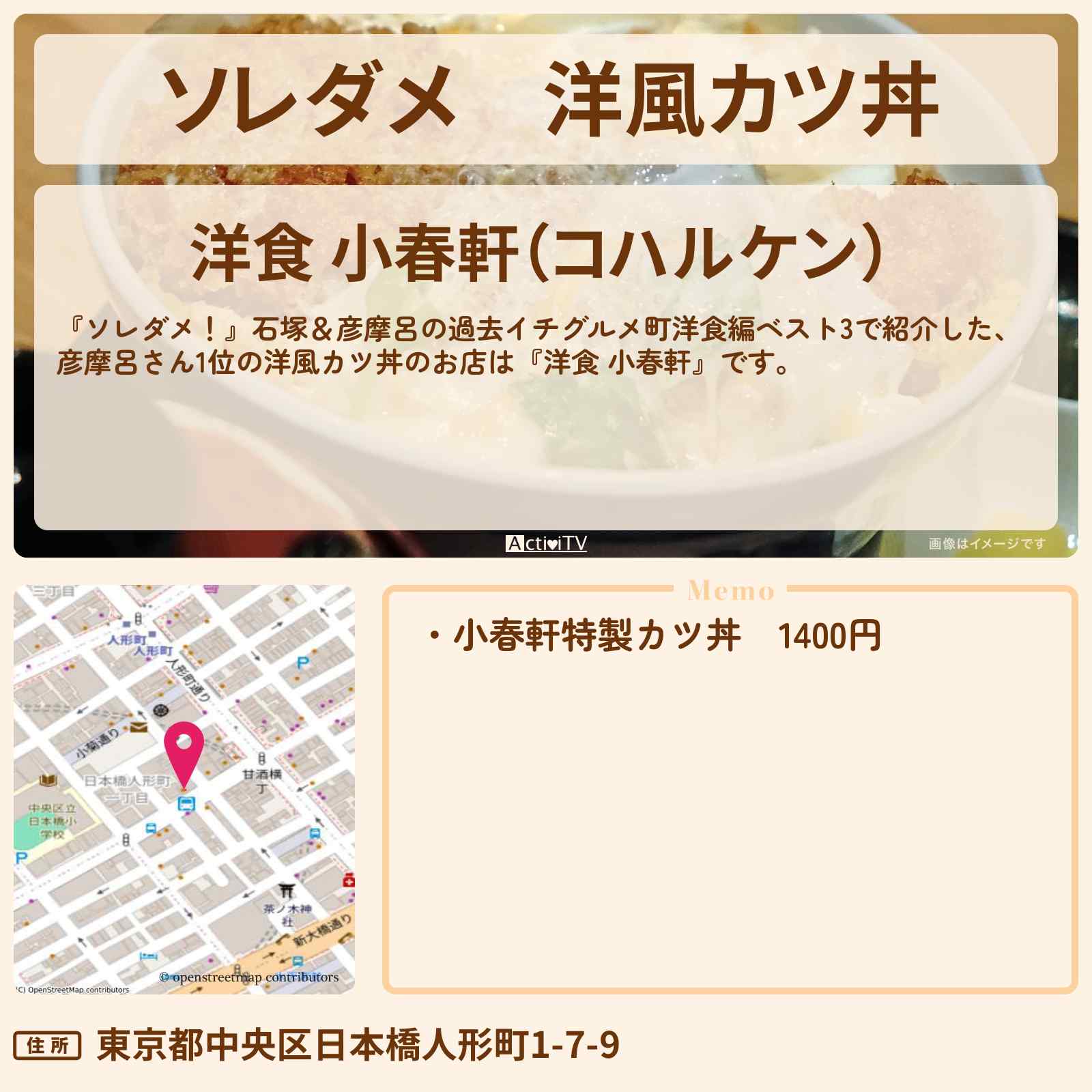 洋風カツ丼 人形町駅「洋食 小春軒(コハルケン)」