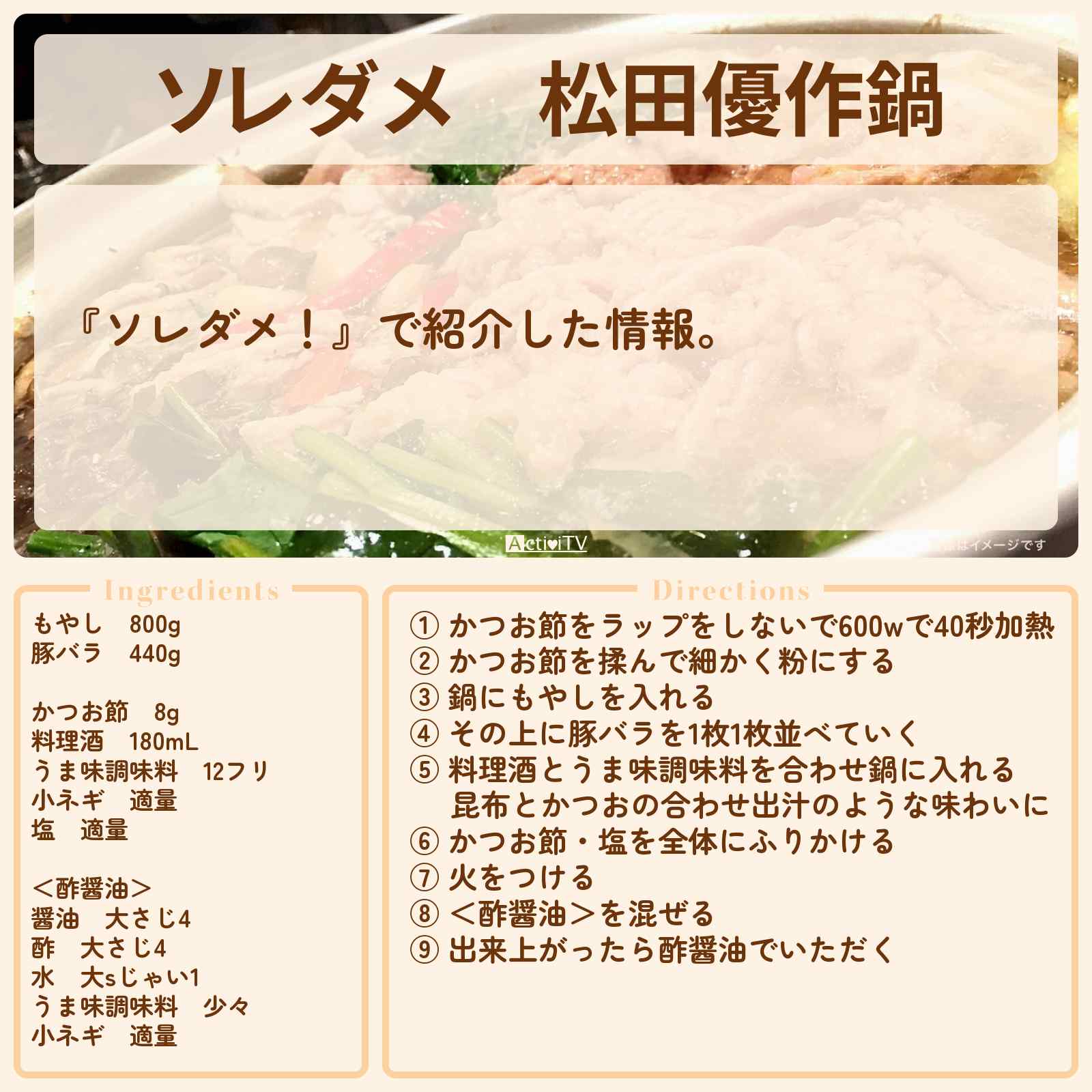 (水)放送の【ソレダメ!】で紹介した情報。