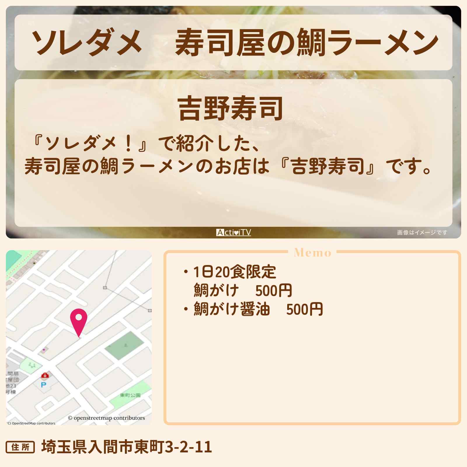寿司屋の鯛ラーメン 武蔵藤沢駅「吉野寿司」