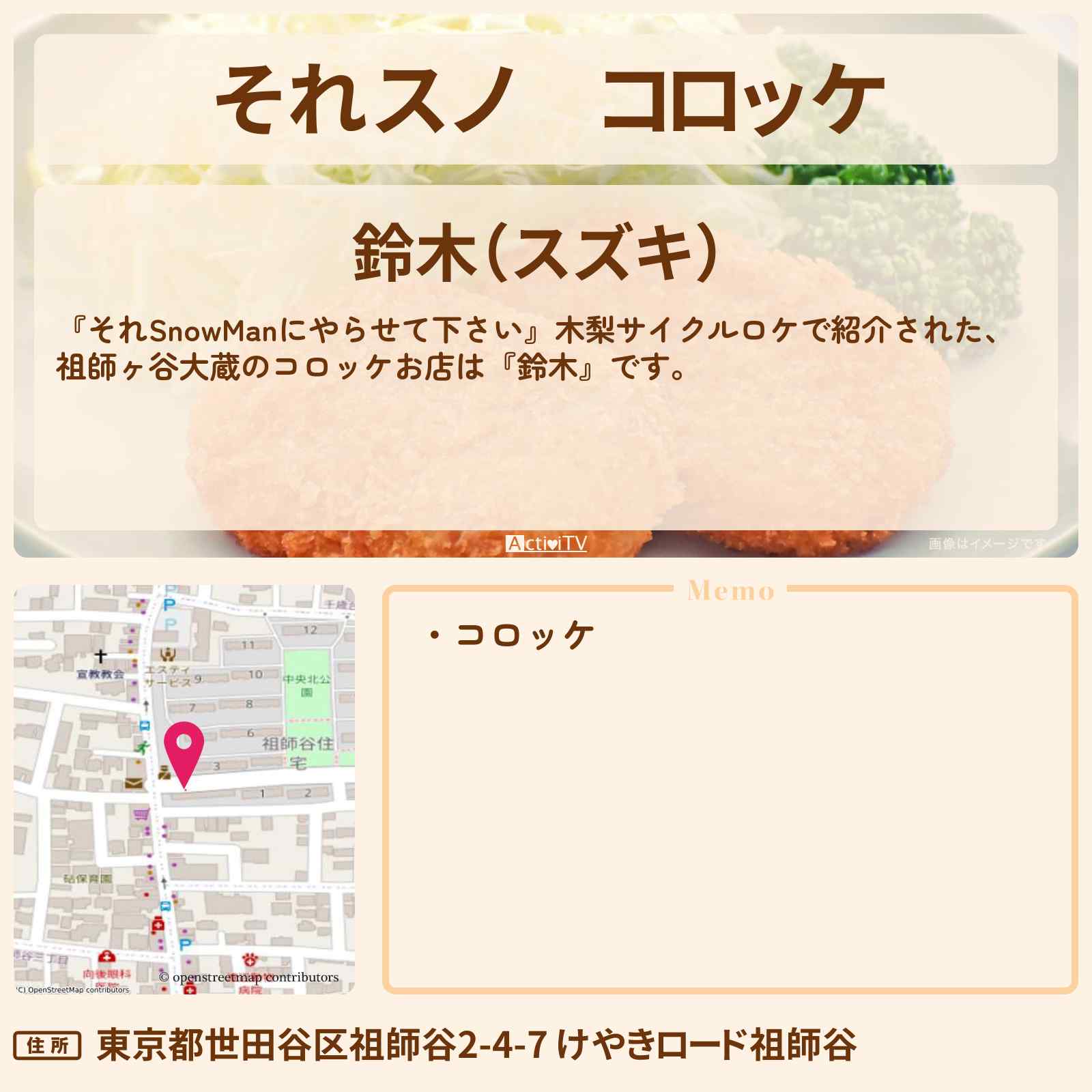 | 住所 | 東京都世田谷区祖師谷2-4-7 けやきロード祖師谷 |