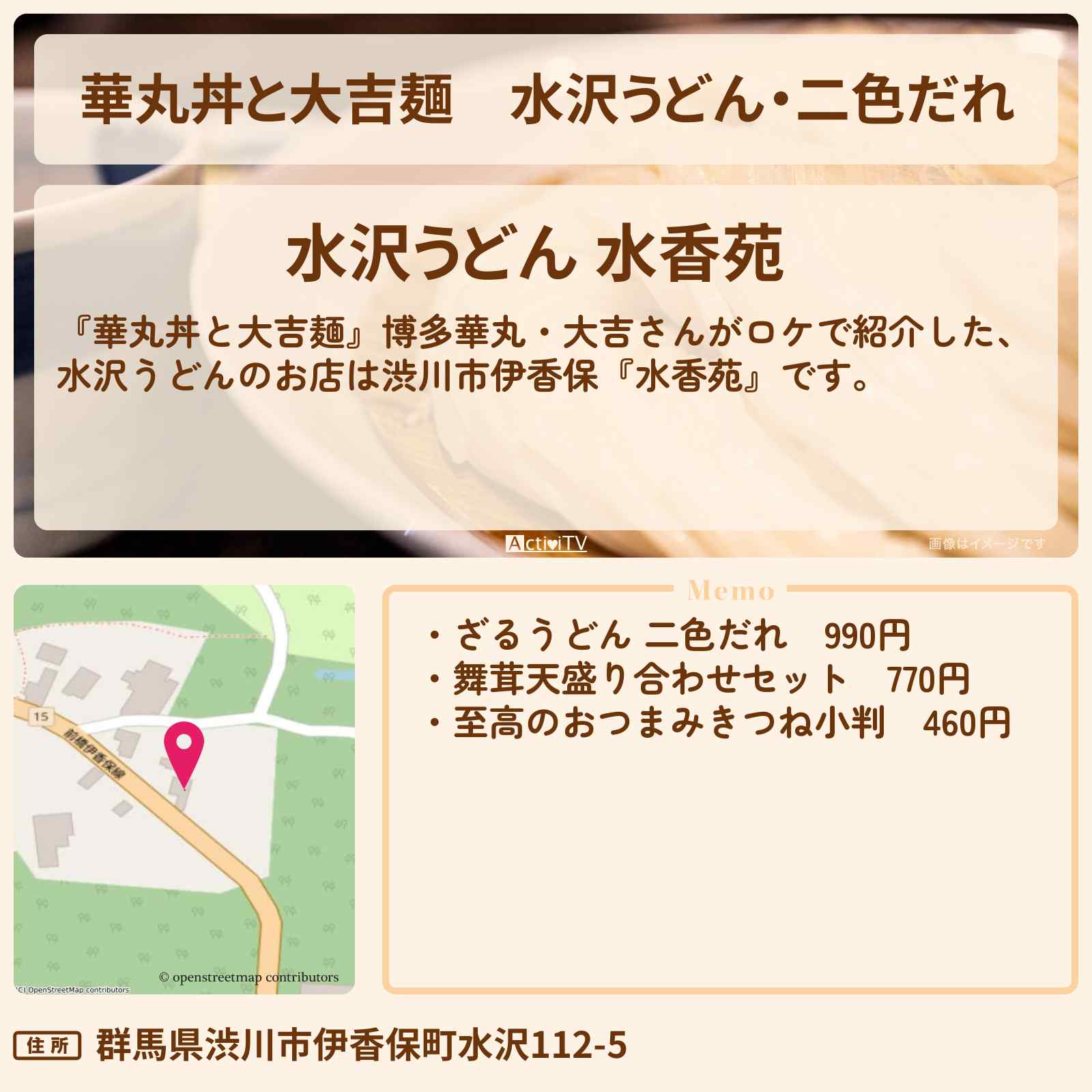 | 住所 | 群馬県渋川市伊香保町水沢112-5 |