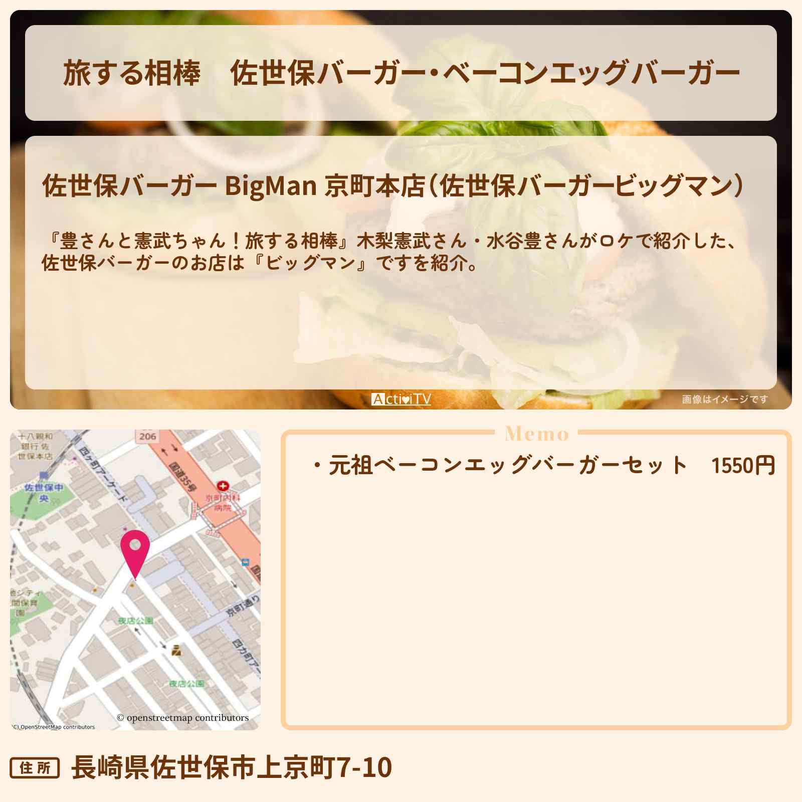 ベーコンエッグバーガー「佐世保バーガー BigMan 京町本店(佐世保バーガービッグマン)」