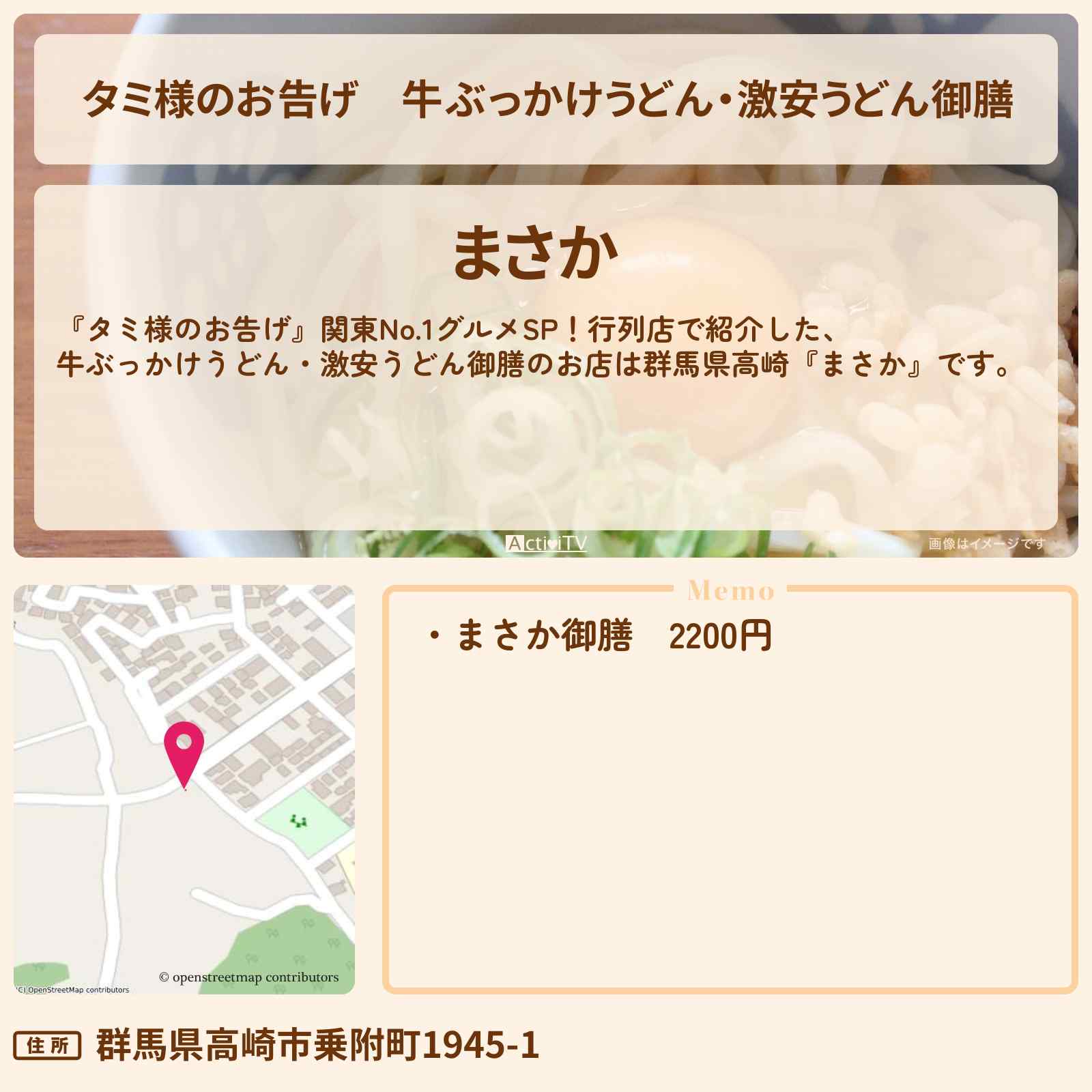 [和食好き人気店☆☆] こちらは『まさか(高崎/定食)』のお店ページです。実名でのオススメが32件集まっています。Rettyで食が好きなグルメな人たちからお店を探そう!…