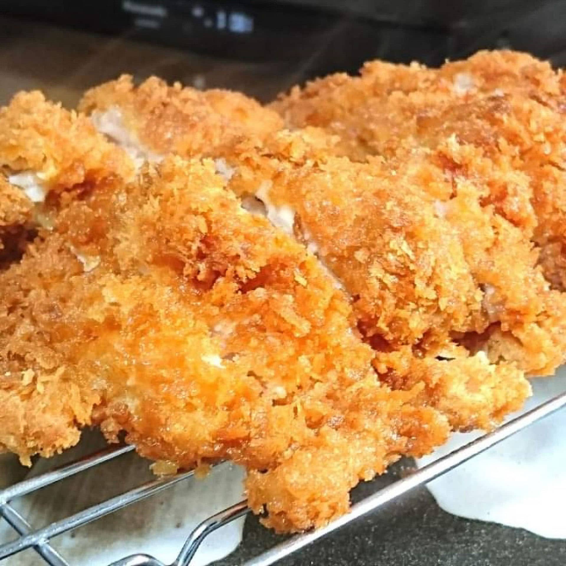 「チキンカツ」は店主が独自に調合した塩みとうま味が効いた調味料と、衣をつけた鶏胸肉を細かいパン粉でジューシーな食感にするため高温で2分揚げして仕上げます。