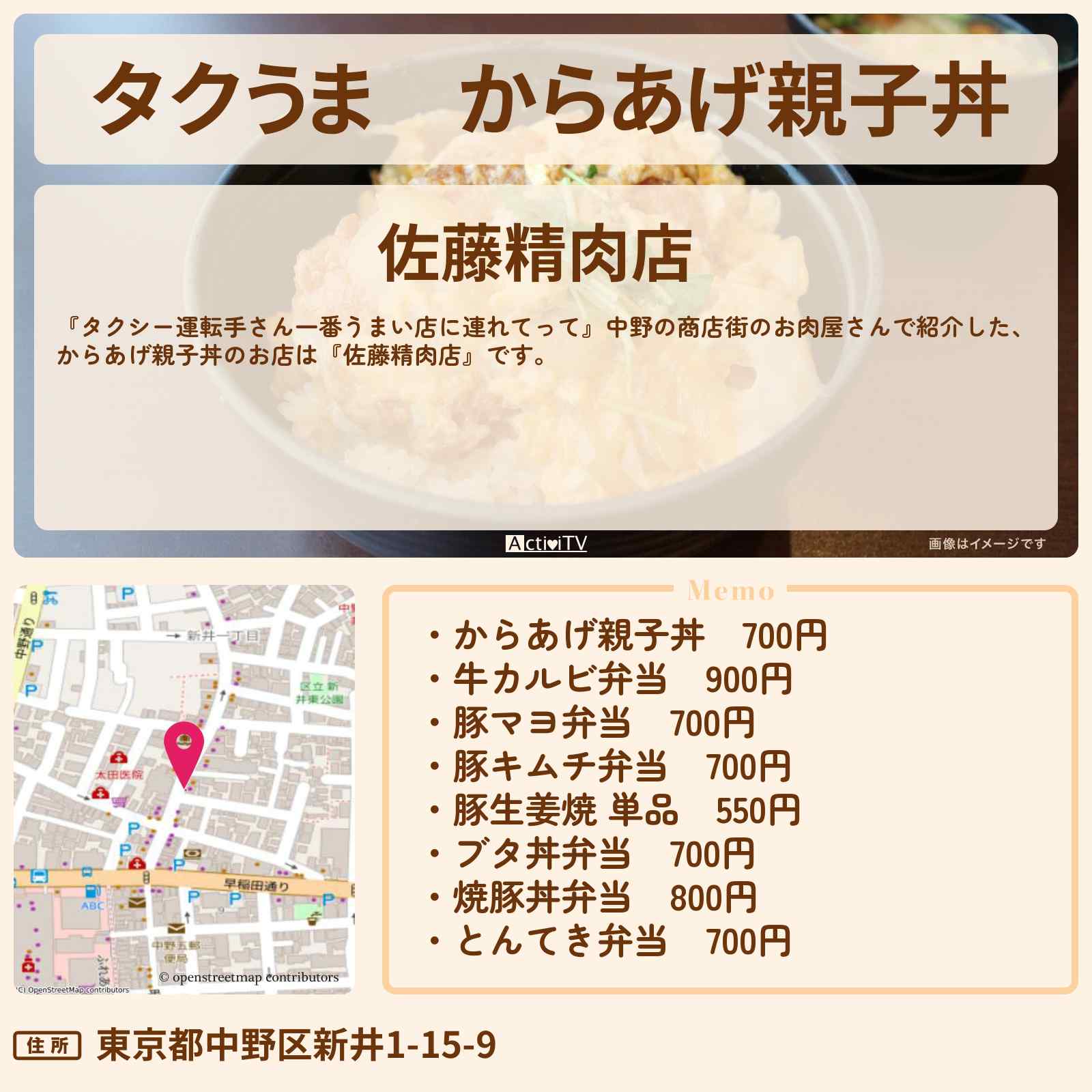 からあげ親子丼 中野駅「佐藤精肉店」