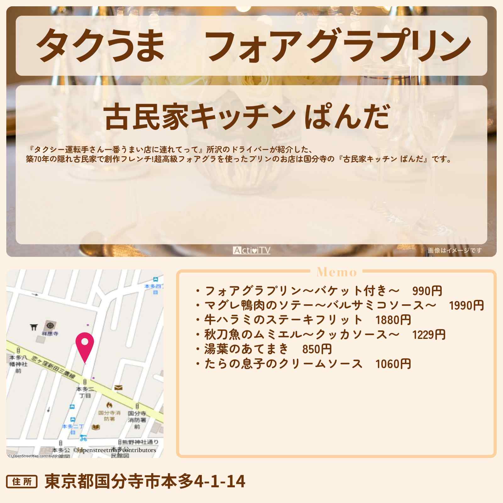 フォアグラプリン 国分寺駅「古民家キッチン ぱんだ」