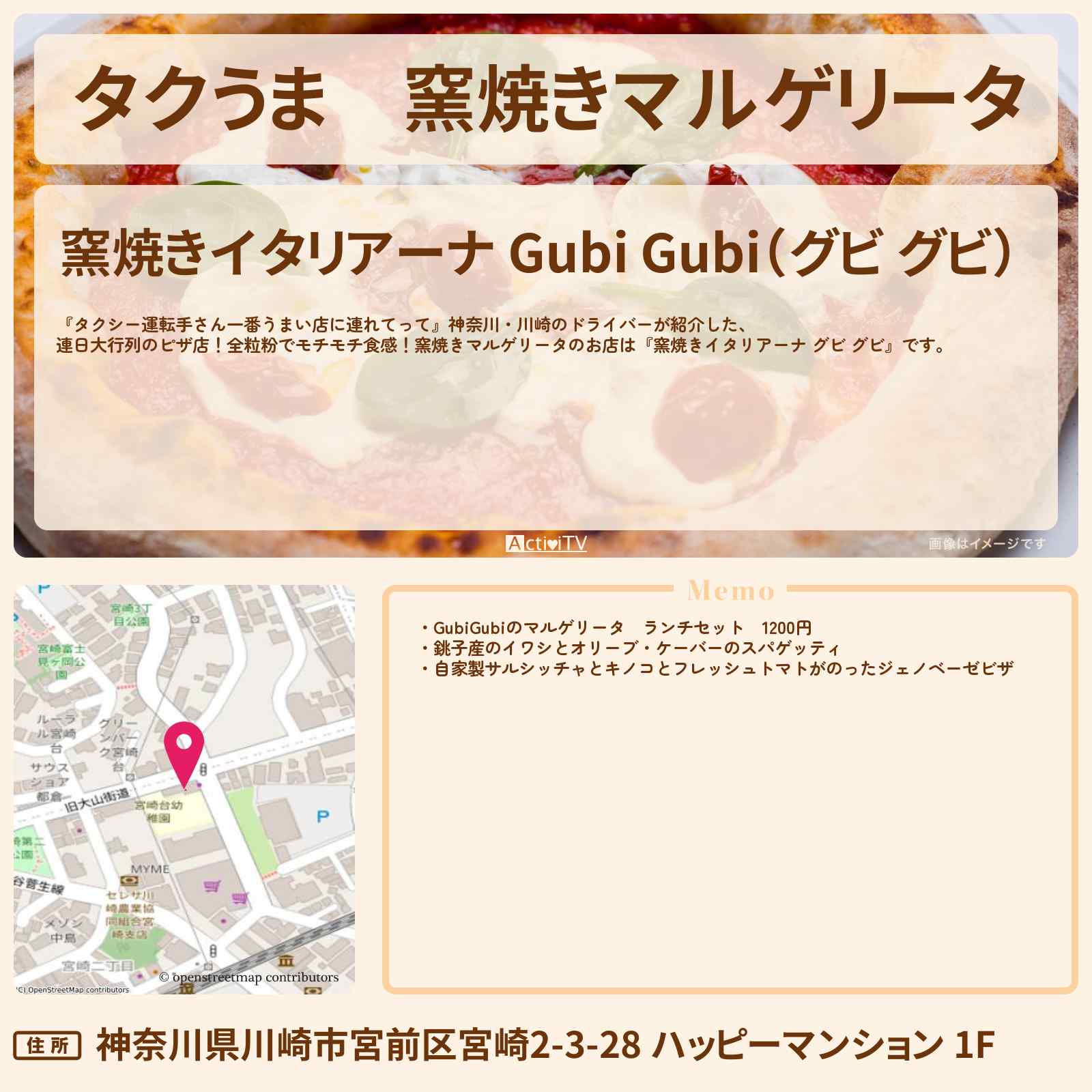 窯焼きマルゲリータ 宮崎台駅「窯焼きイタリアーナ Gubi Gubi(グビ グビ)」