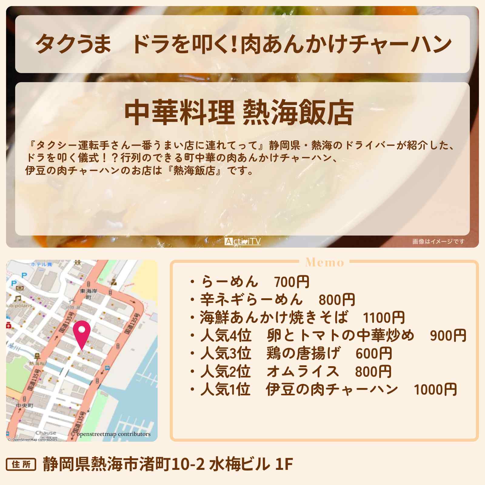 | 住所 | 静岡県熱海市渚町10-2 水梅ビル 1F |