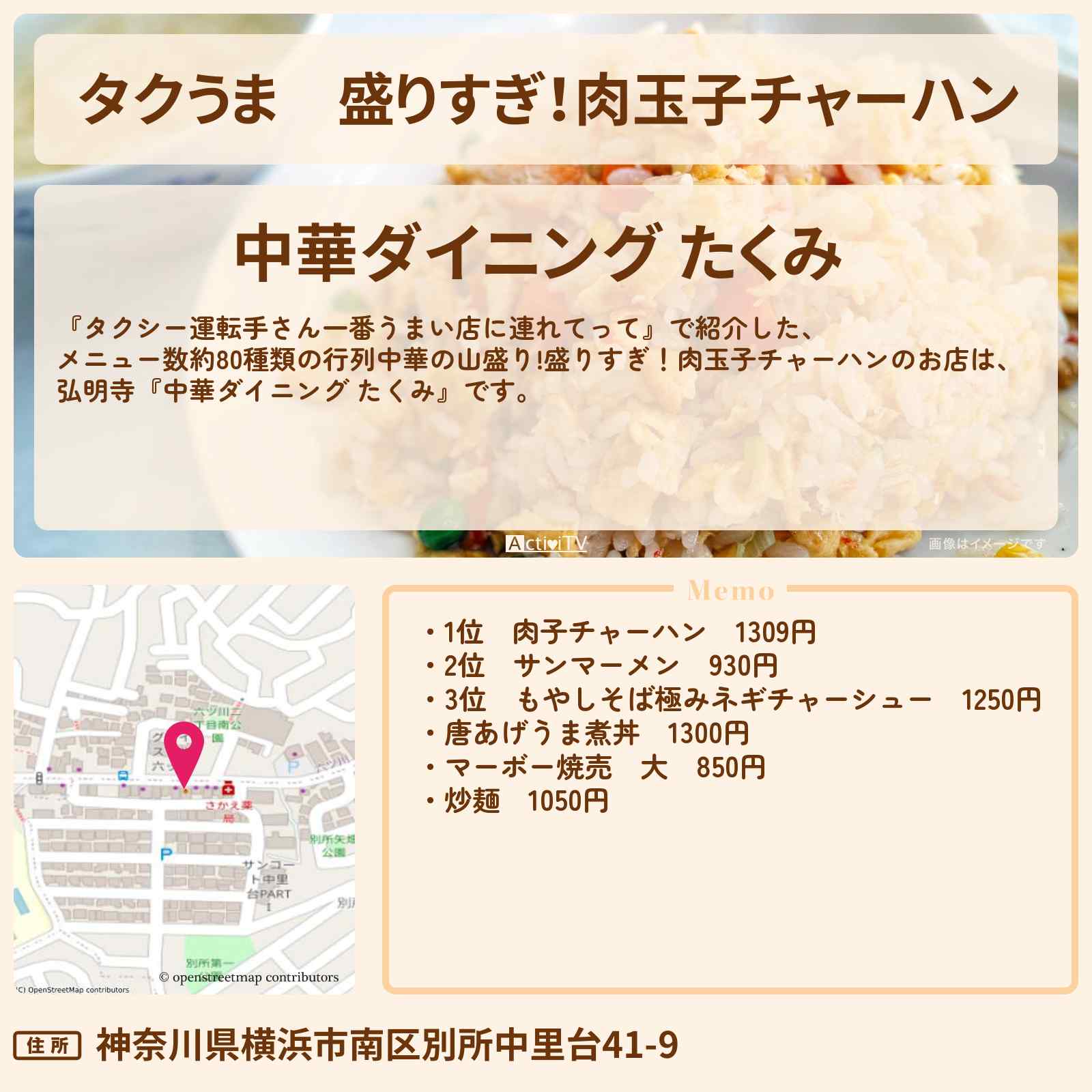 盛りすぎ!肉玉子チャーハン 弘明寺駅「中華ダイニング たくみ」