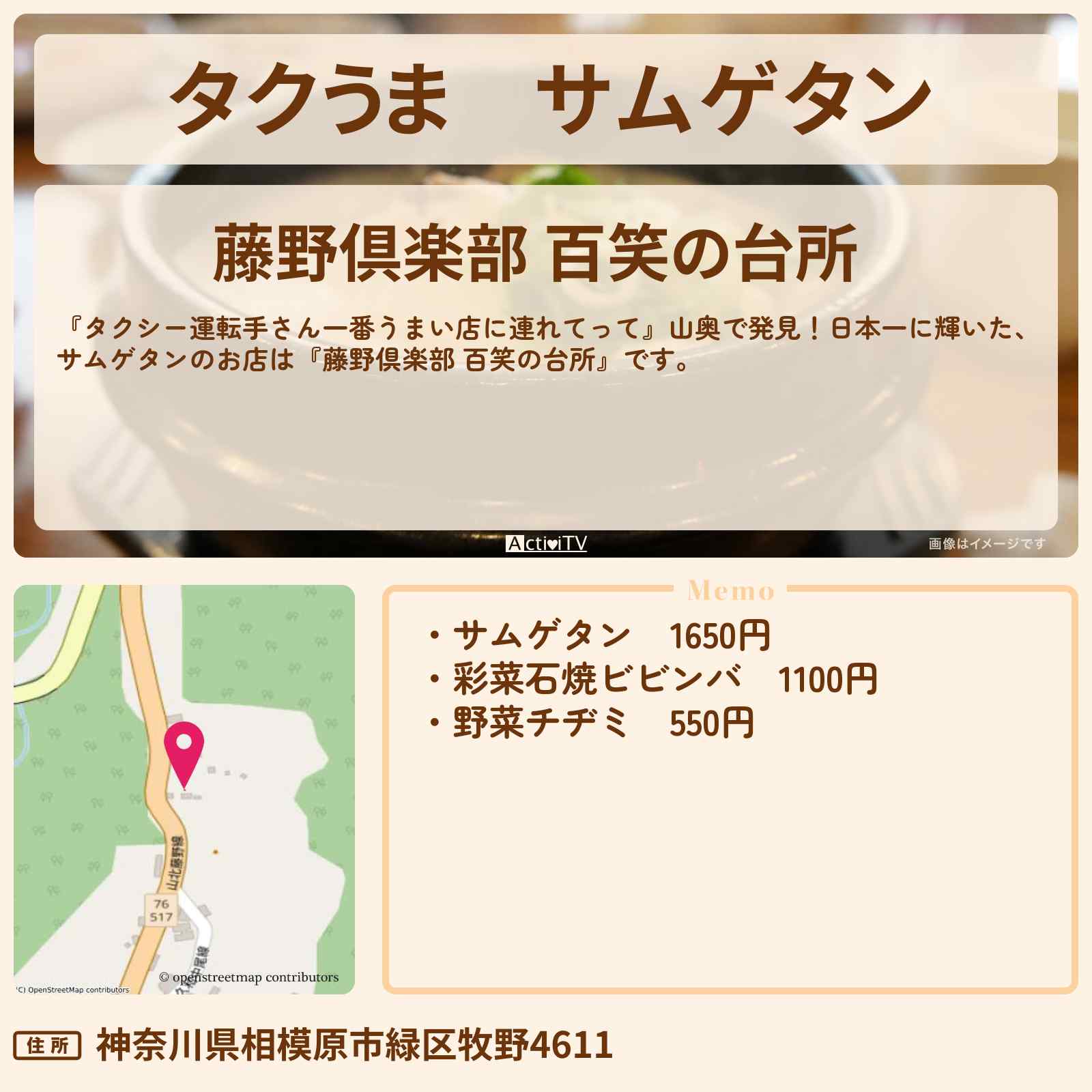 サムゲタン 藤野駅「藤野倶楽部 百笑の台所」