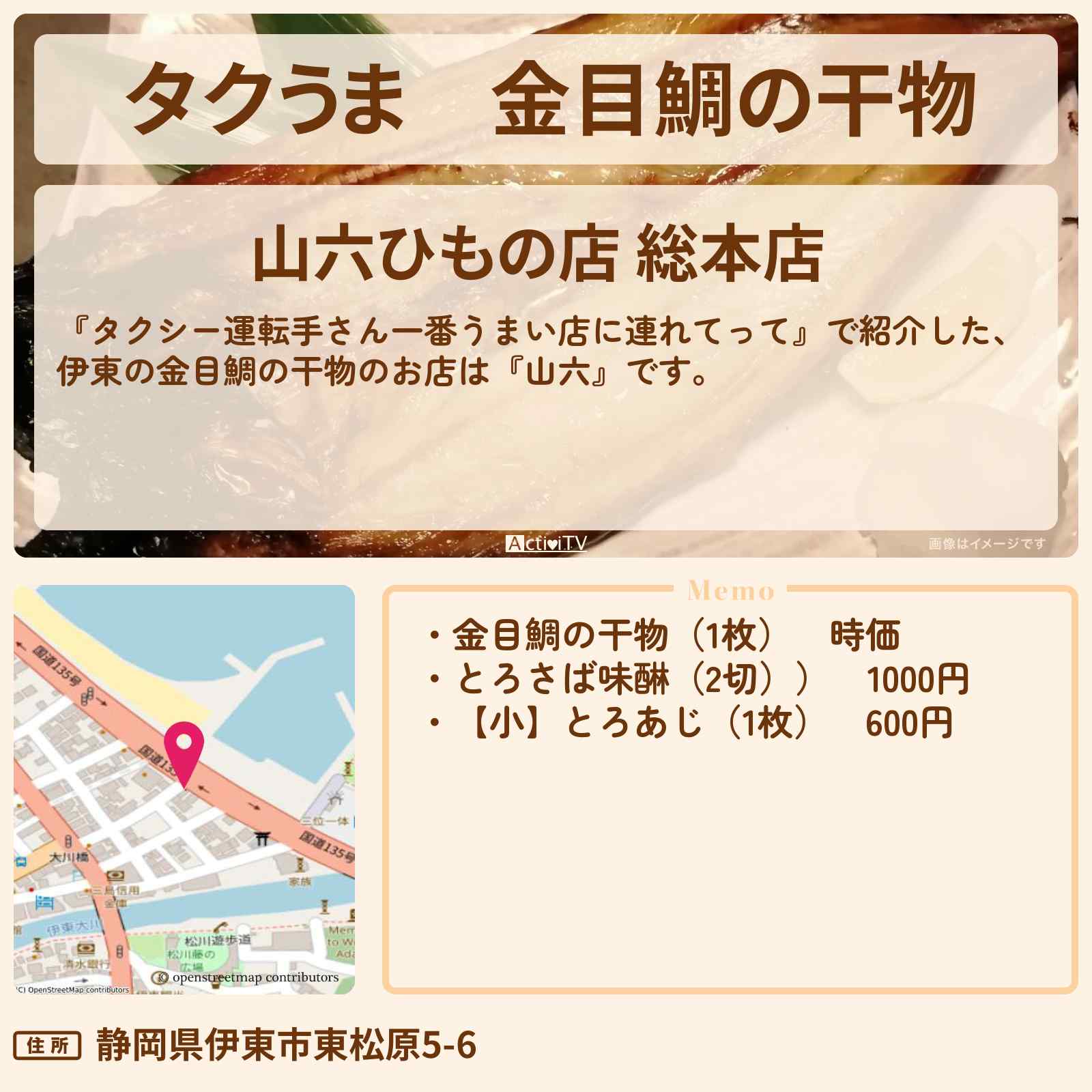 美味しい干物、大人気とろさば、とろあじ、とろさば味醂、金目鯛など海の幸をお届け。創業75年、静岡県伊東市の老舗干物店「山六ひもの店」の通販サイト…