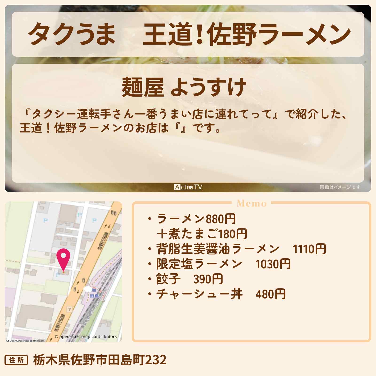王道!佐野ラーメン 田島駅「麺屋 ようすけ」