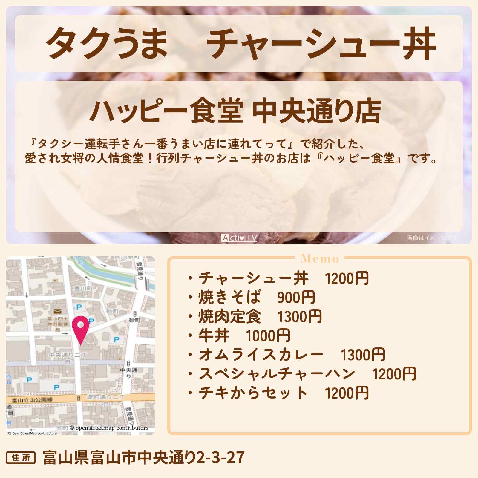 チャーシュー丼 中町駅「ハッピー食堂 中央通り店」