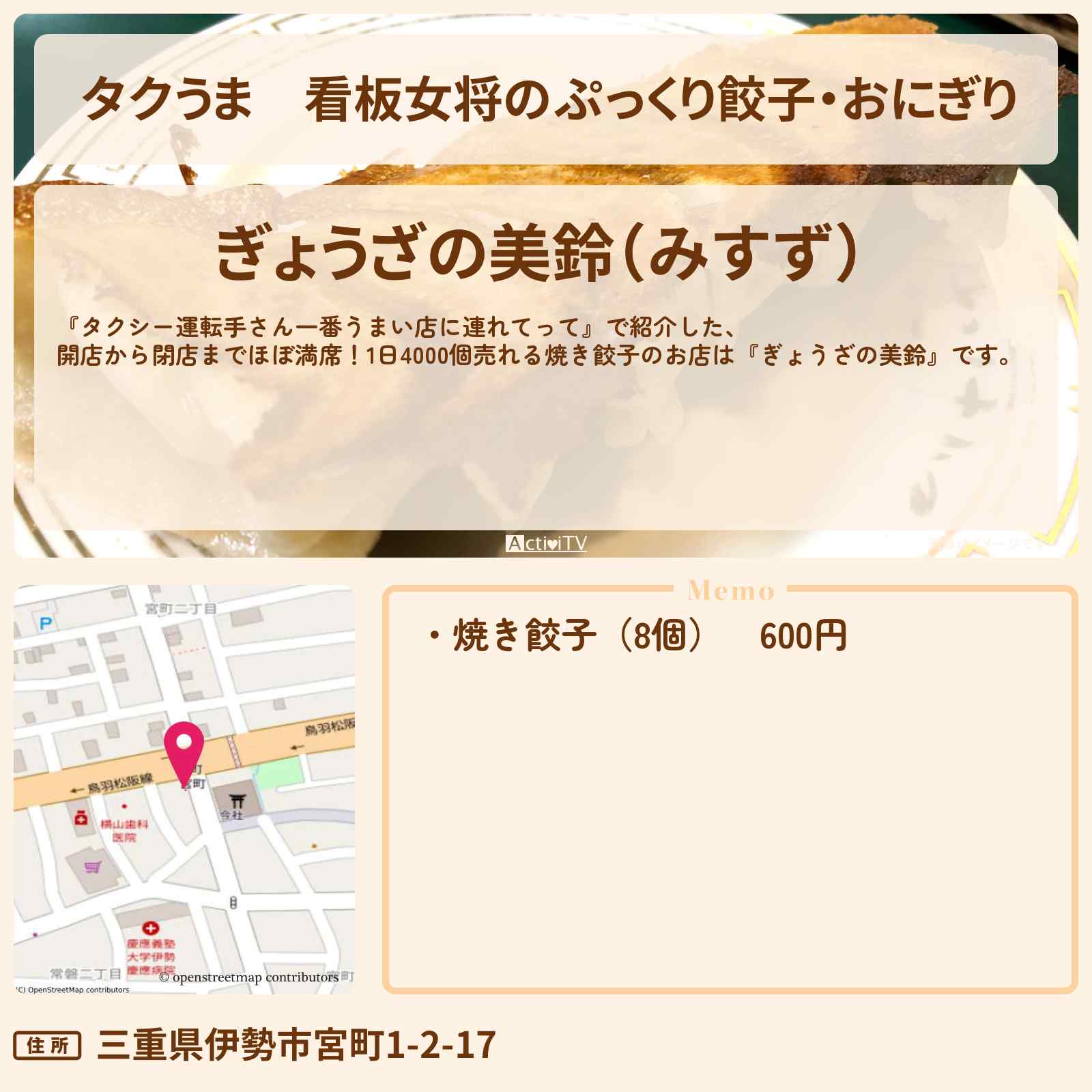 ぎょうざの美鈴|三重県伊勢市にある創業昭和38年の手作り餃子専門店