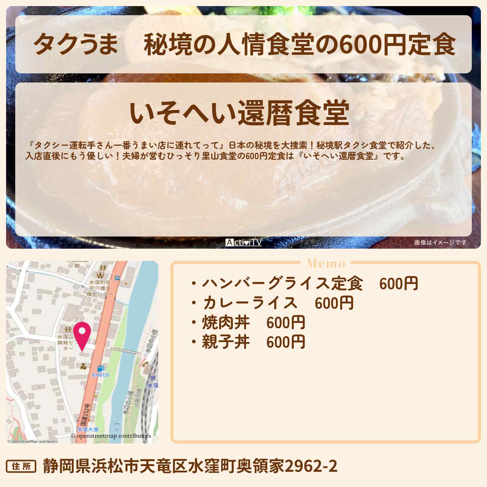 秘境の人情食堂の600円定食 水窪駅「いそへい還暦食堂」
