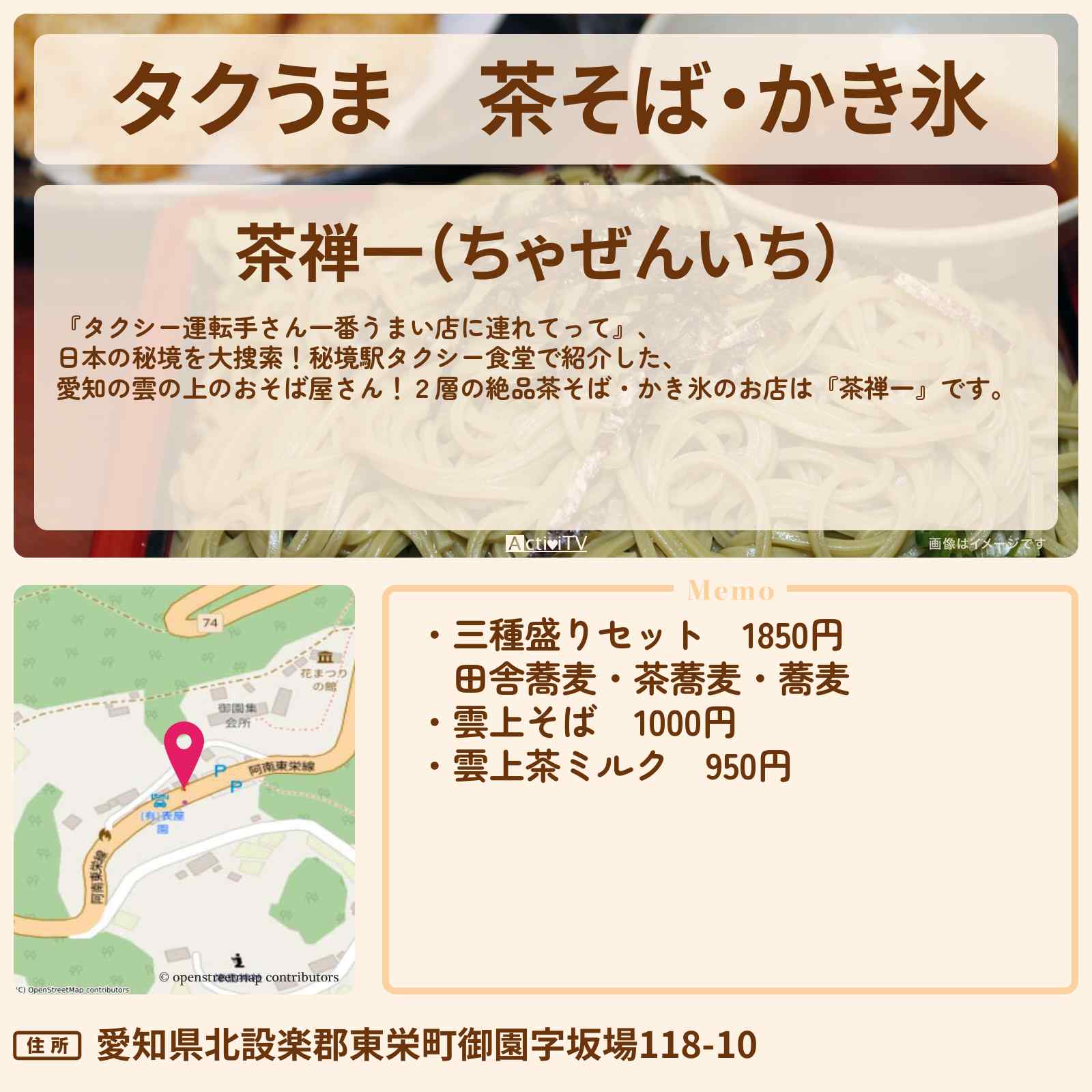 愛知の雲の上の蕎麦屋「茶禅一(ちゃぜんいち)」