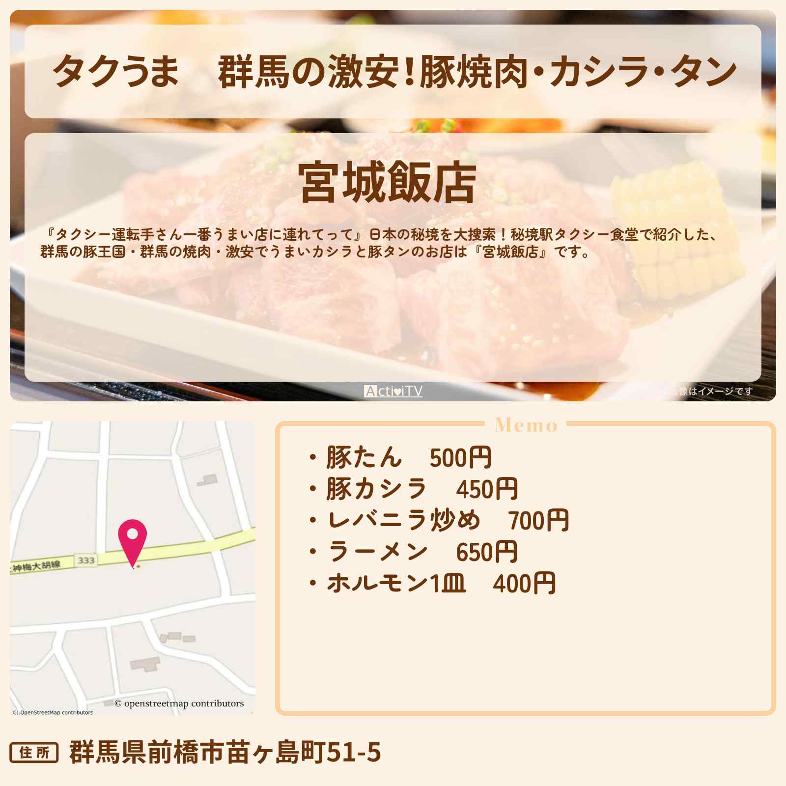 群馬の激安!豚焼肉・カシラ・タン「宮城飯店」