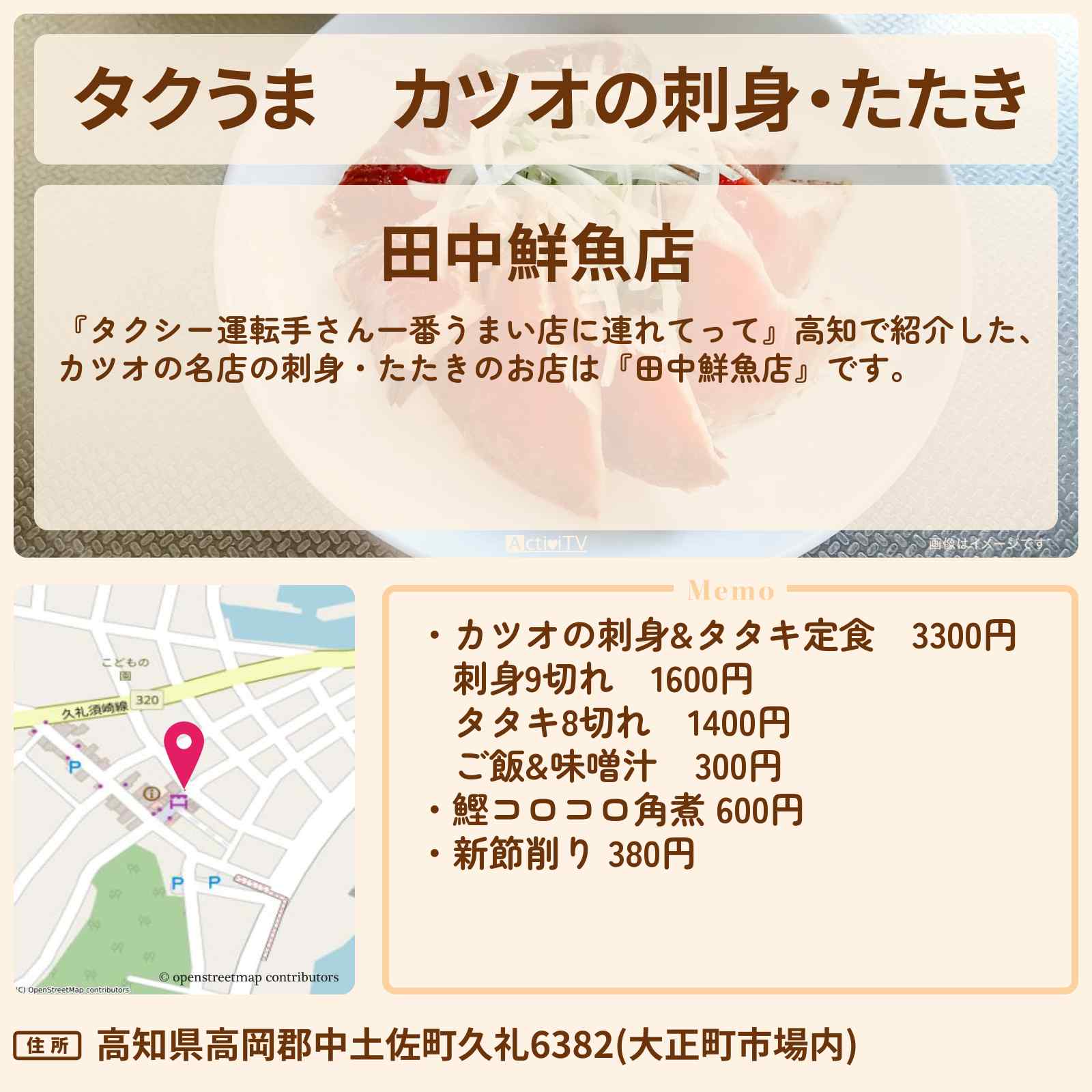 カツオの刺身・たたき 土佐久礼駅「田中鮮魚店」