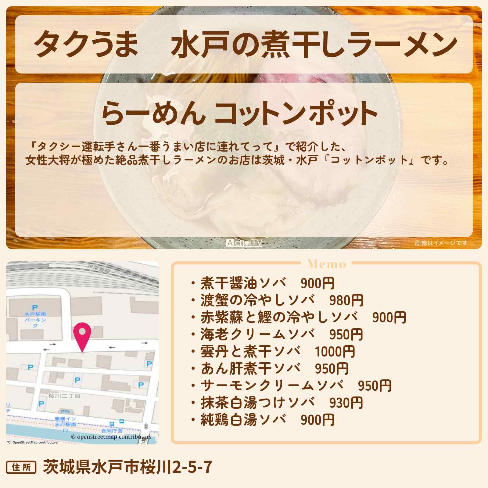 [ラーメン好き人気店] こちらは『らーめん コットンポット(水戸/ラーメン)』のお店ページです。実名でのオススメが9件集まっています。Rettyで食が好きなグルメな人たちからお店を探そう!