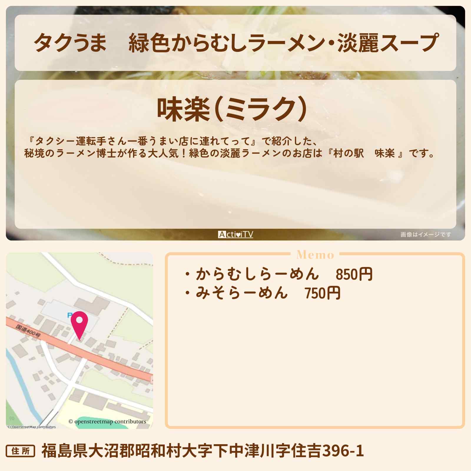 こちらは『村の駅 味楽(会津若松/ラーメン)』のお店ページです。Rettyで食が好きなグルメな人たちからお店を探そう!