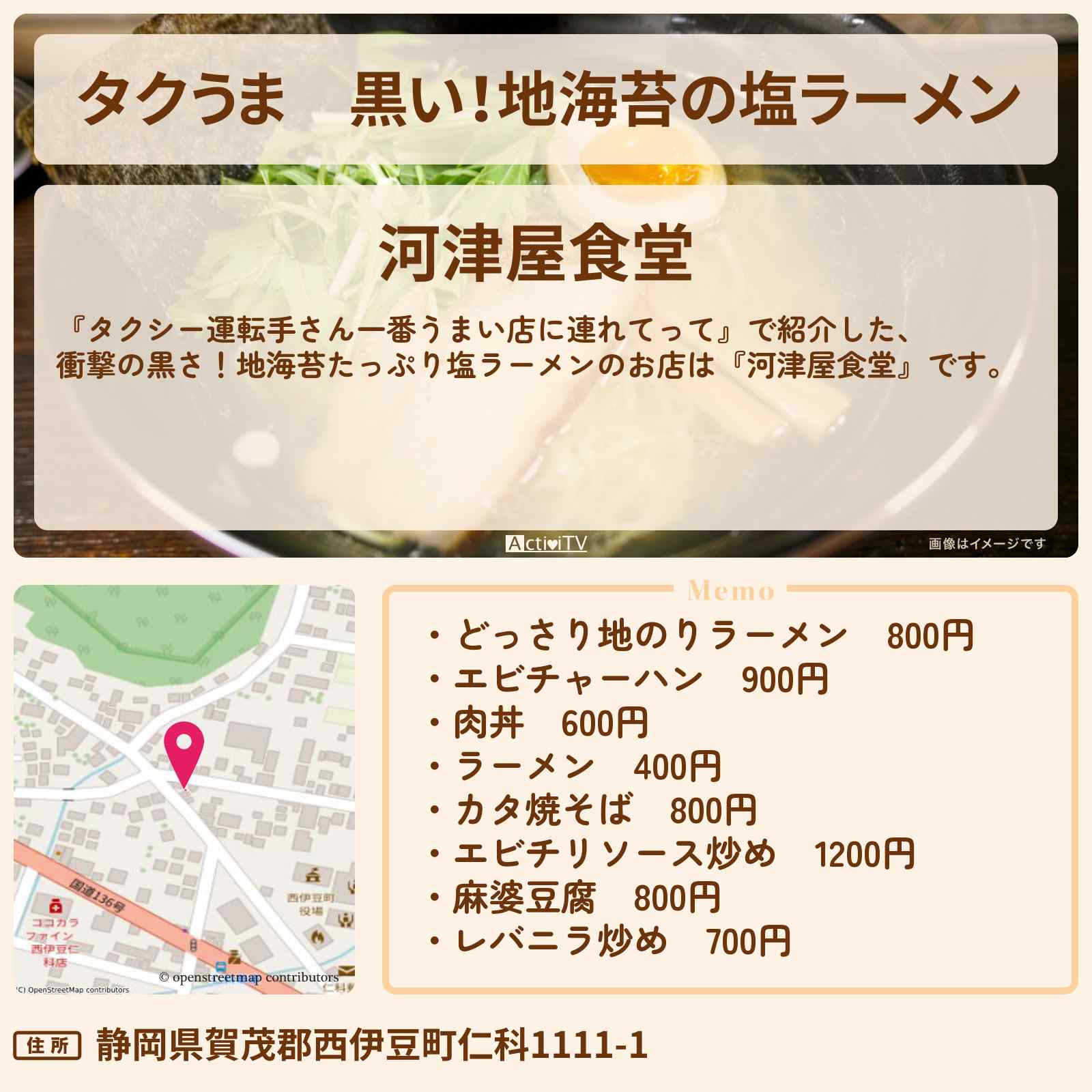 黒い!地海苔の塩ラーメン「河津屋食堂」