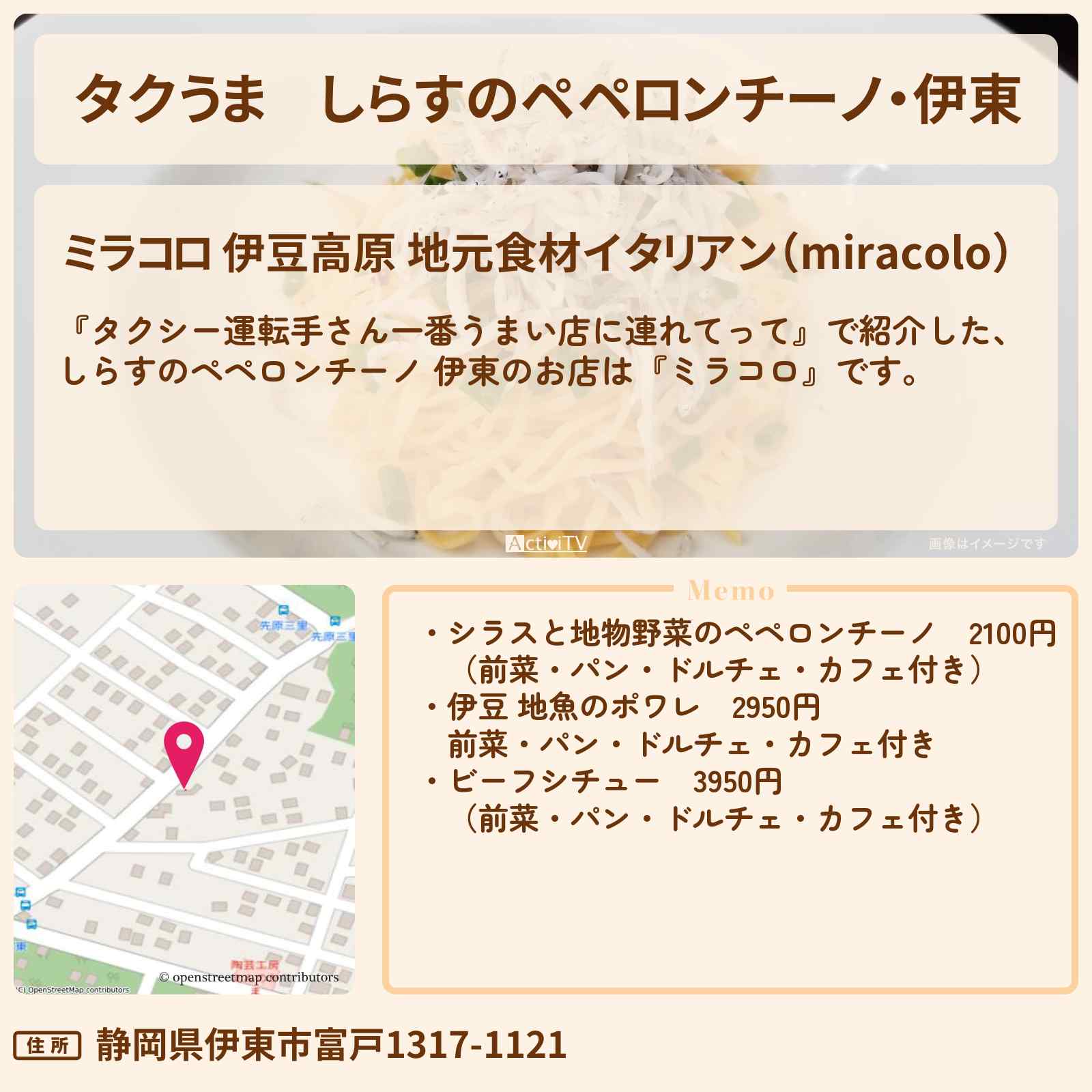 富戸駅「ミラコロ 伊豆高原 地元食材イタリアン(miracolo)」