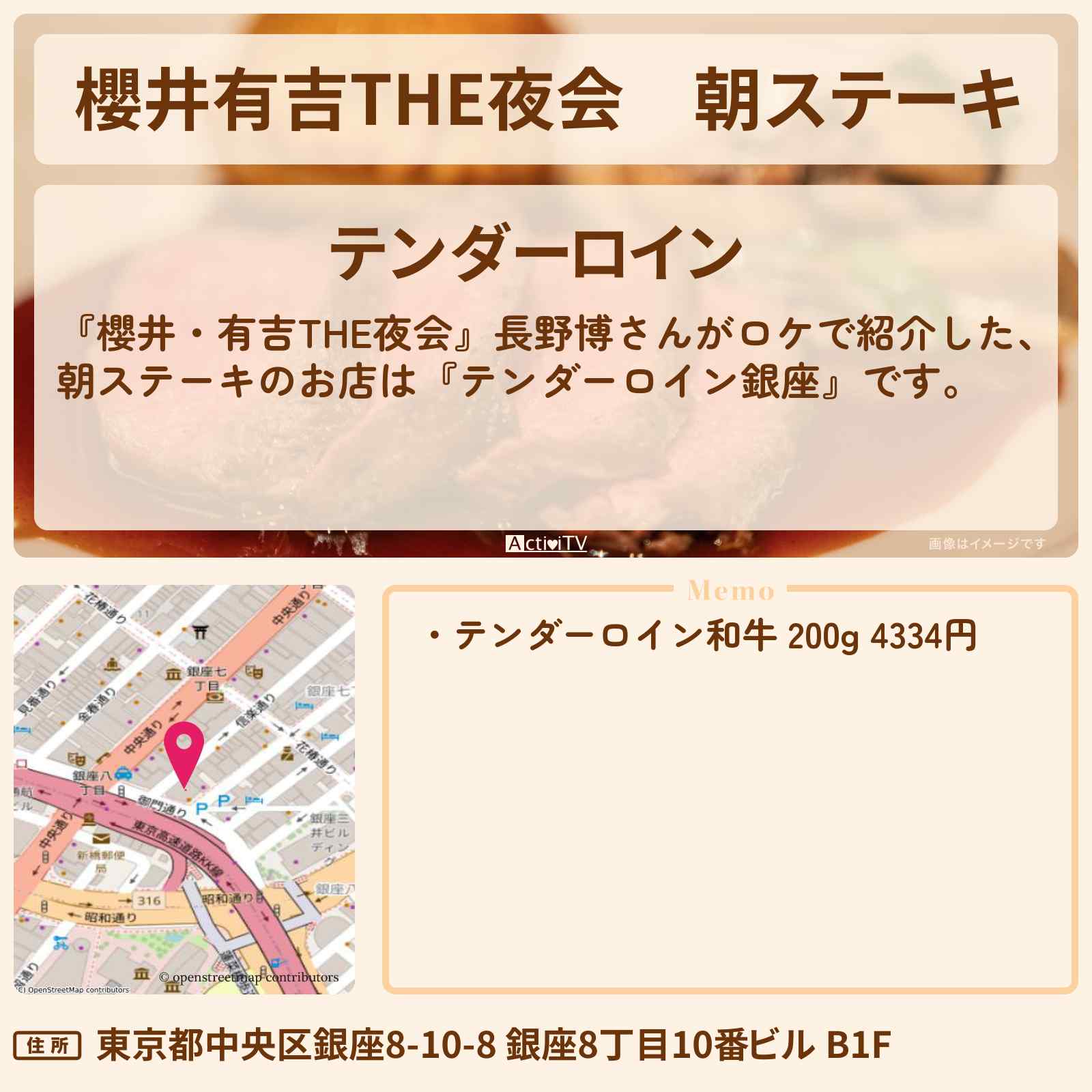 朝ステーキ 銀座「テンダーロイン」