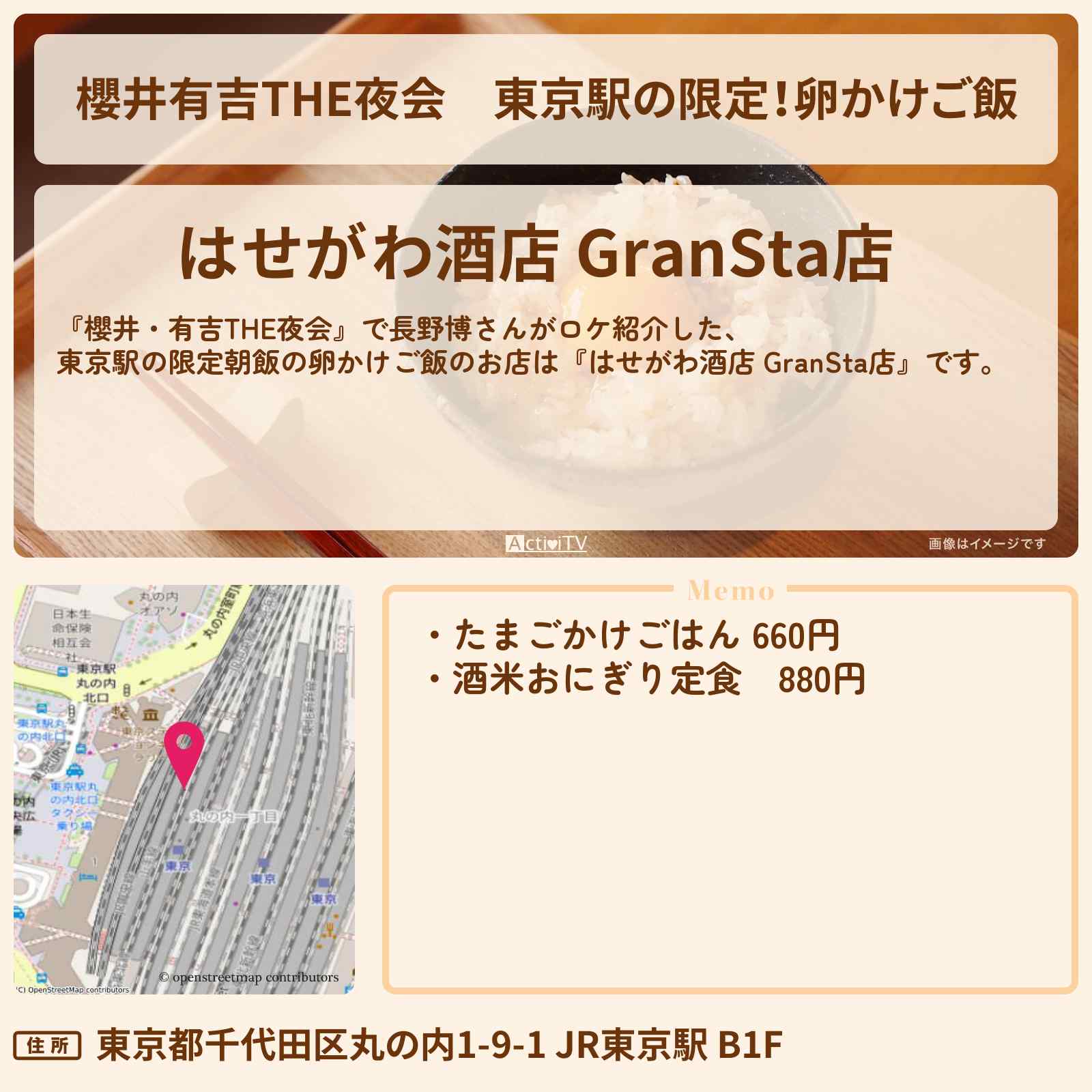 卵かけご飯 東京駅「はせがわ酒店 GranSta店」