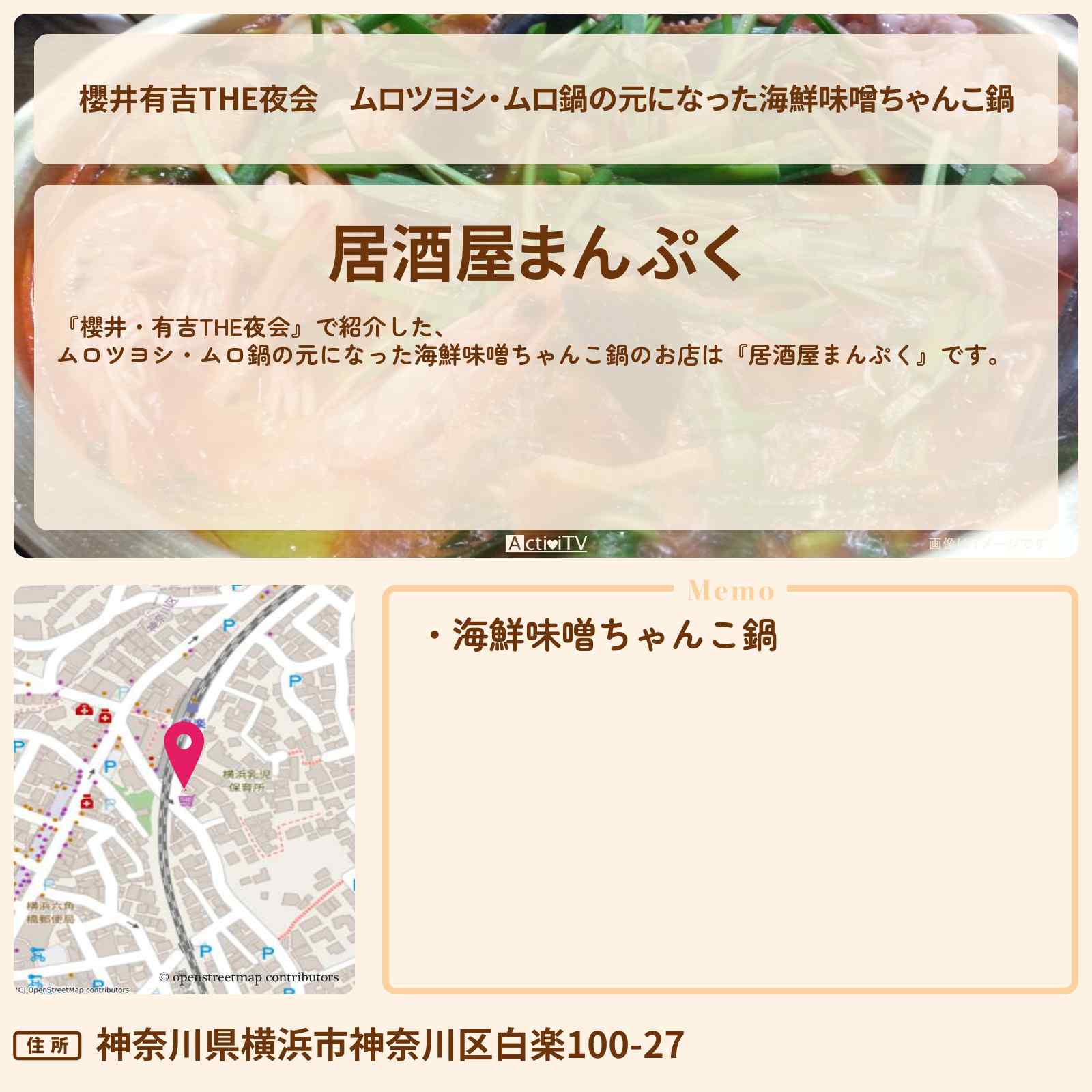ムロ鍋の元になった絶品鍋 白楽駅「居酒屋まんぷく」
