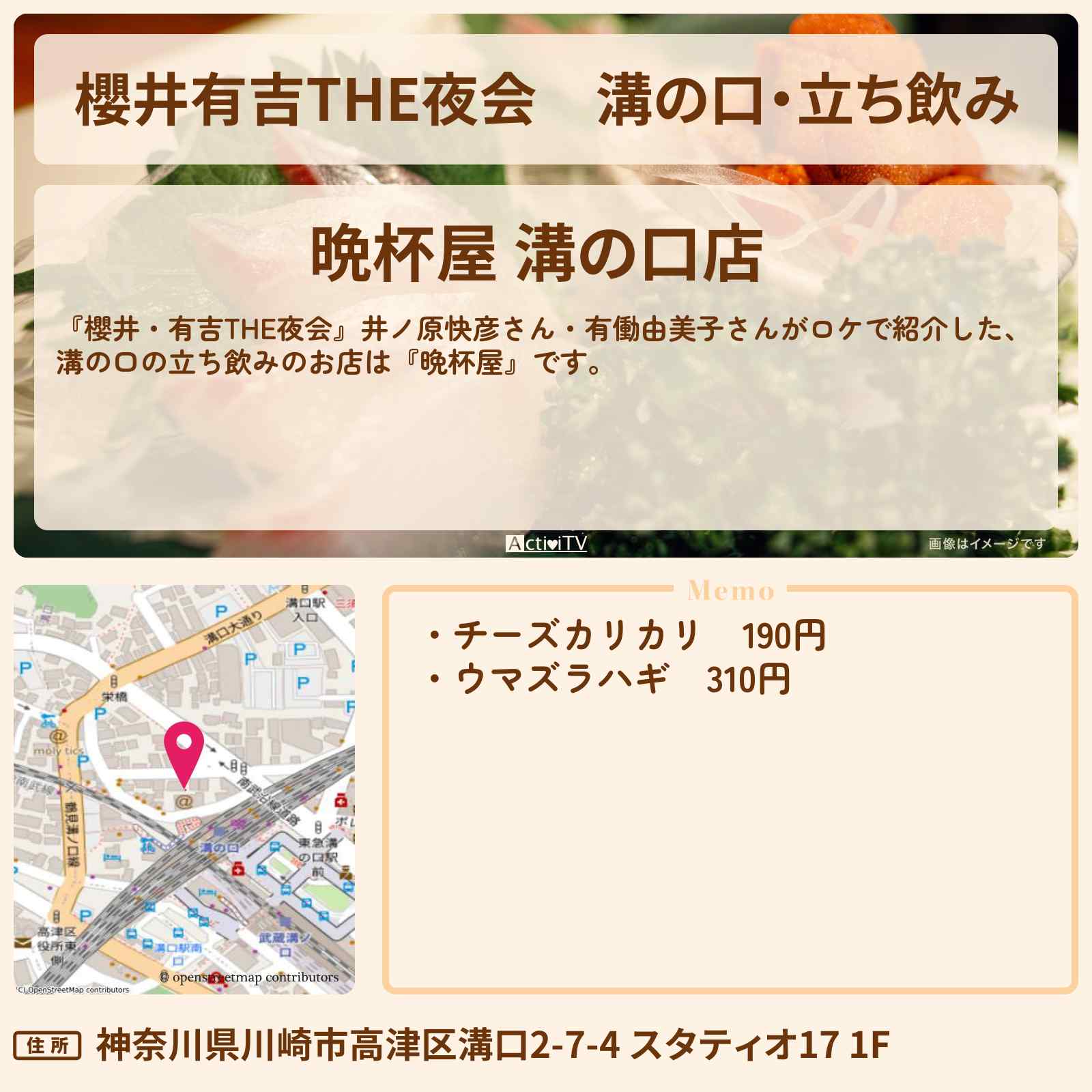 こちらは『立呑み晩杯屋 溝ノ口店(溝の口/立ち飲み)』のお店ページです。実名でのオススメが29件集まっています。Rettyで食が好きなグルメな人たちからお店を探そう!…
