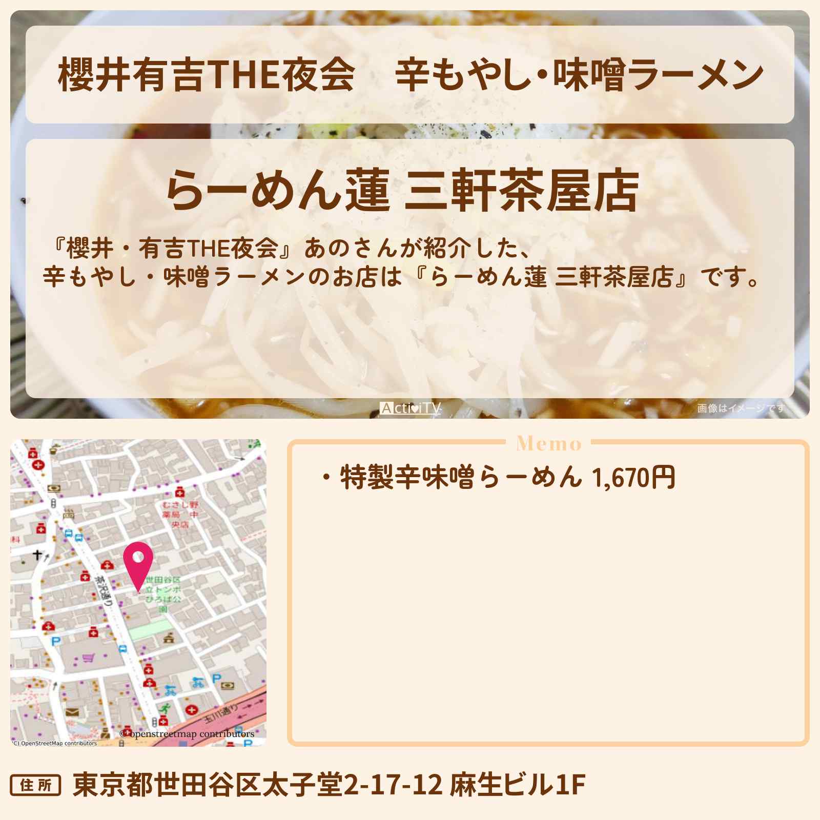 三軒茶屋駅「らーめん蓮 三軒茶屋店」