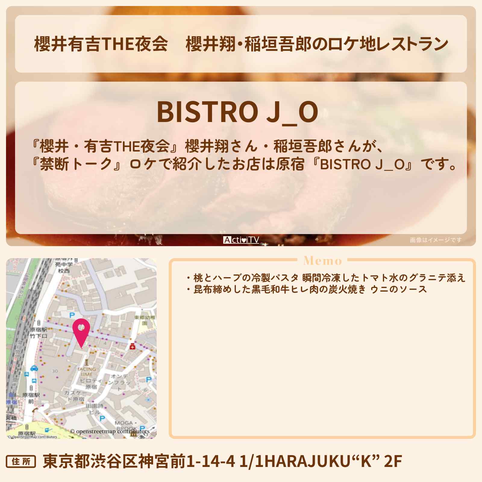 櫻井翔・稲垣吾郎のロケ地 原宿駅「BISTRO J_O」