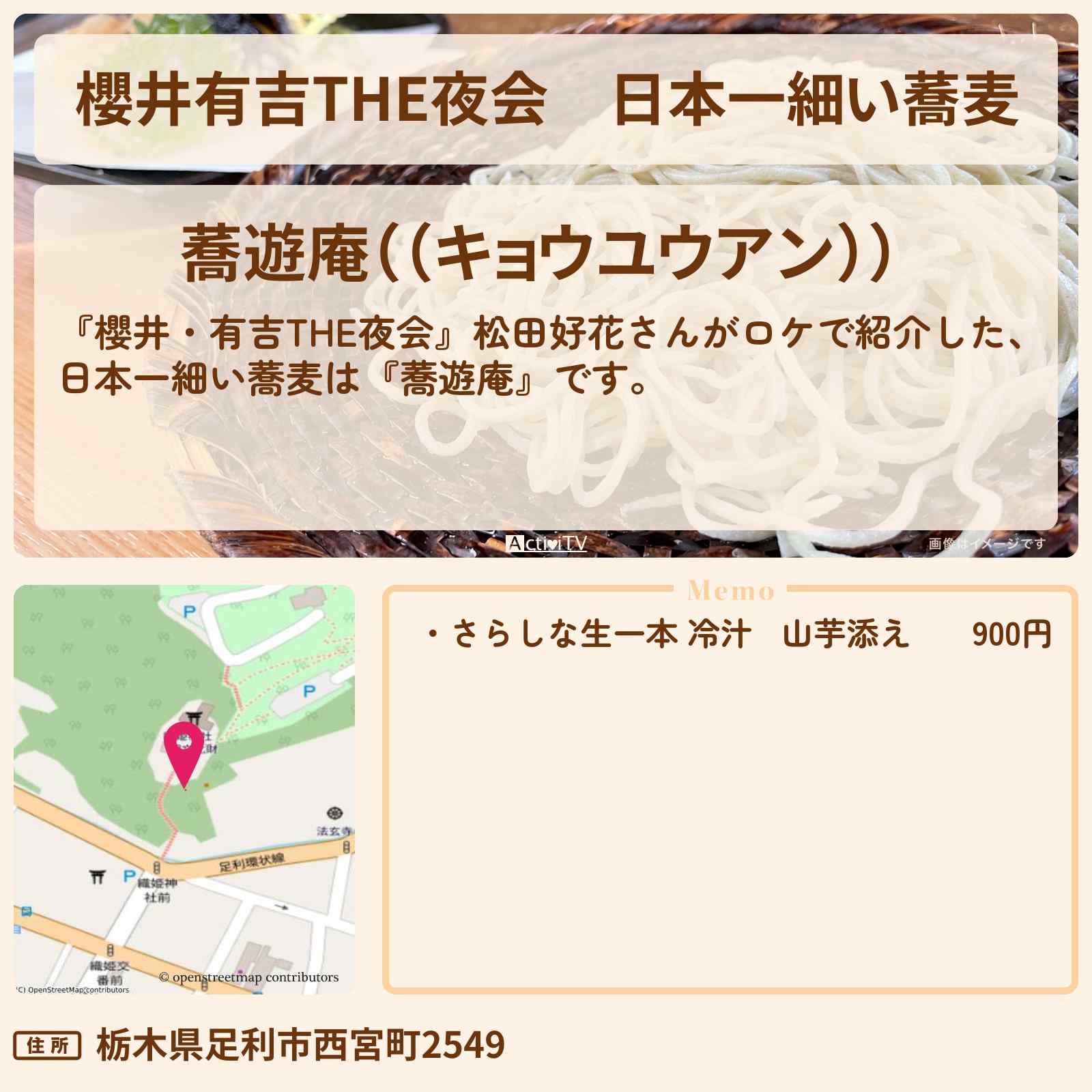 日本一細い蕎麦 足利市駅「蕎遊庵((キョウユウアン))」