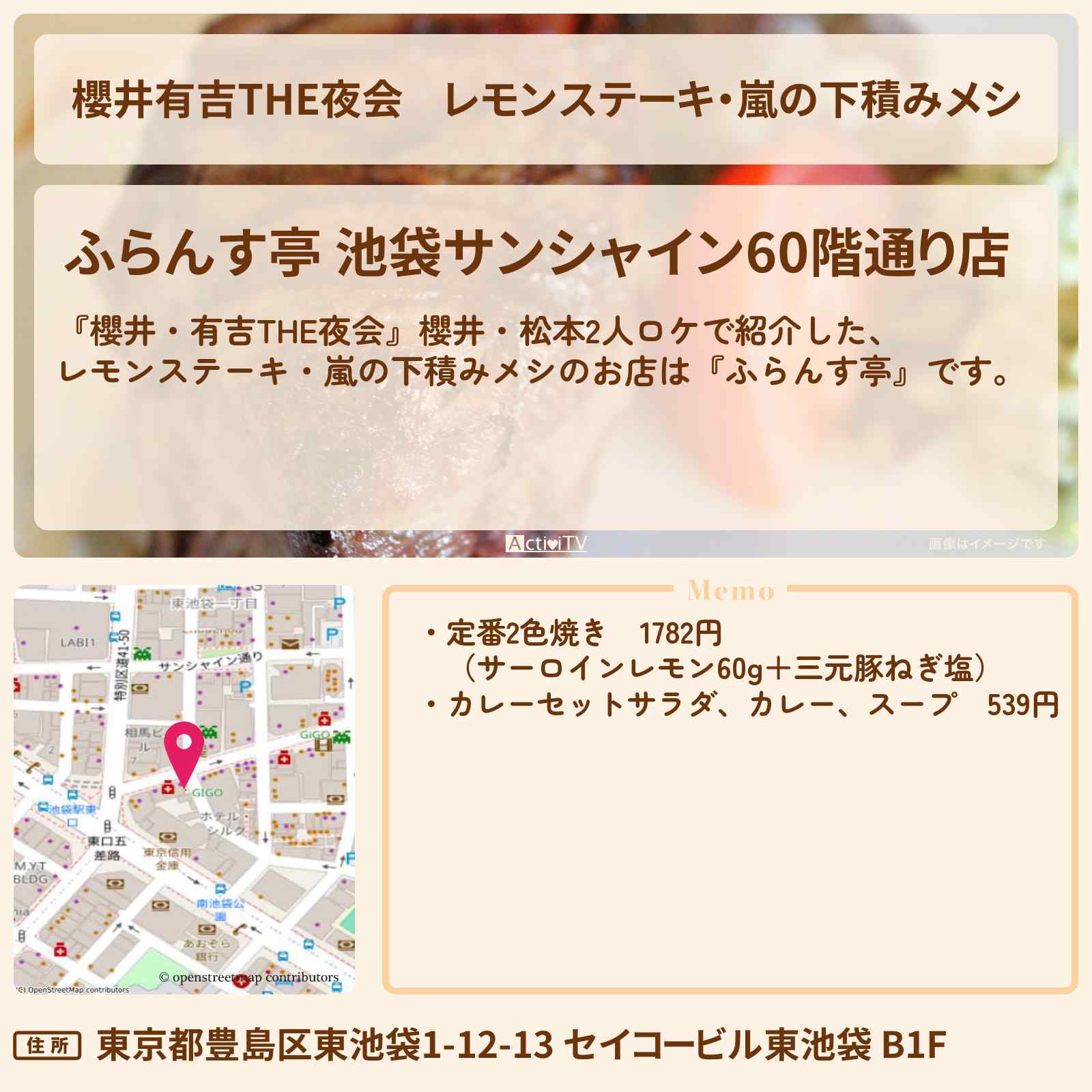 レモンステーキ 池袋駅「ふらんす亭 池袋サンシャイン60階通り店」