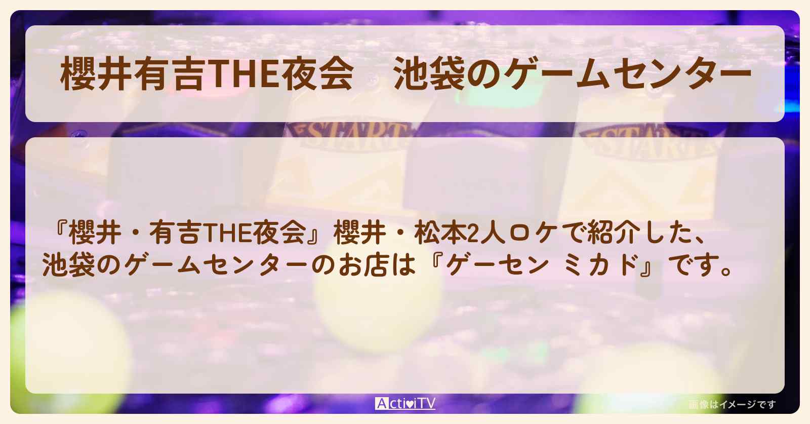 ロケをしたお店「池袋ゲーセン ミカドinランブルプラザ」