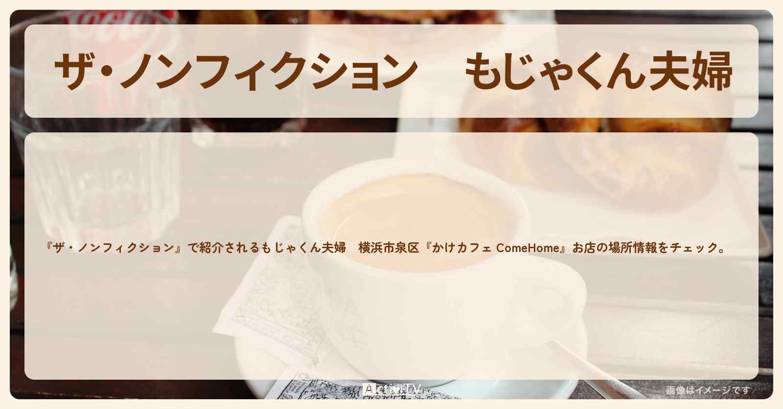 2022年11月6日(日)放送の【ザ・ノンフィクション】で紹介されるもじゃくん夫婦 横浜市泉区『かけカフェ ComeHome』お店の場所情報をチェック。