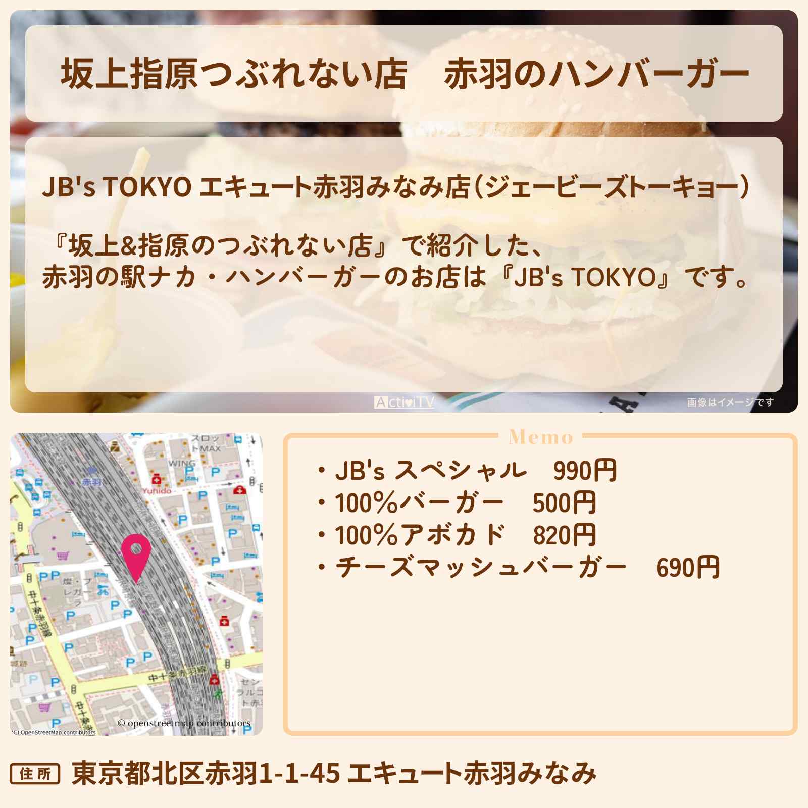 ハンバーガー 赤羽駅「JB’s TOKYO エキュート赤羽みなみ店(ジェービーズトーキョー)」