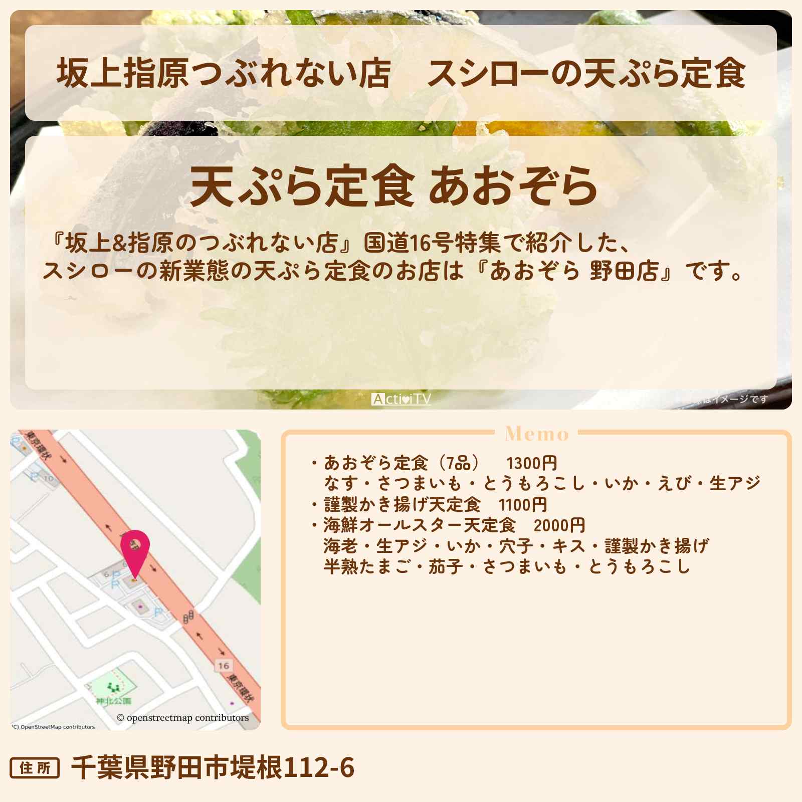 天ぷら定食 あおぞら 野田店(野田) – Retty(レッティ)