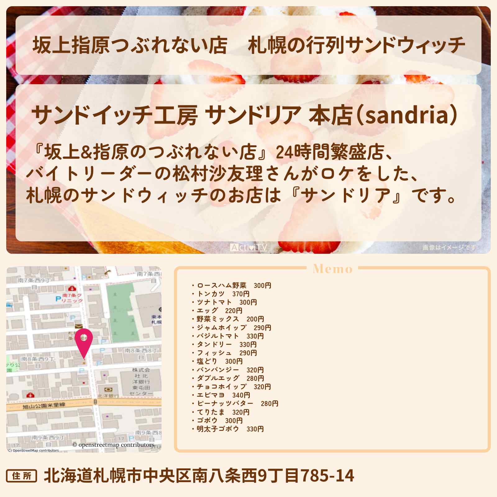札幌の24時間営業サンドウィッチ「サンドイッチ工房 サンドリア 本店(sandria)」