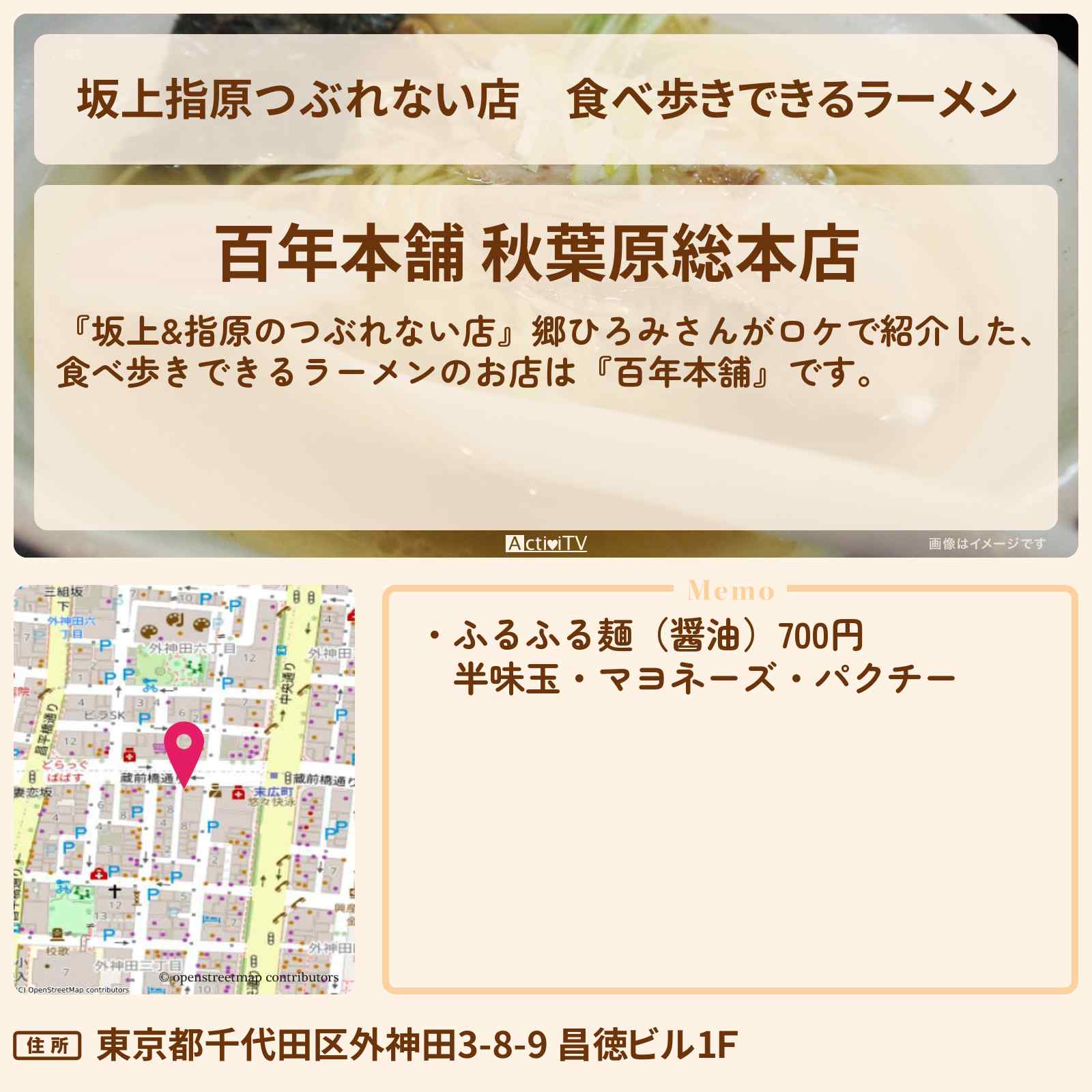 食べ歩きできるラーメン 末広町駅「百年本舗 秋葉原総本店」