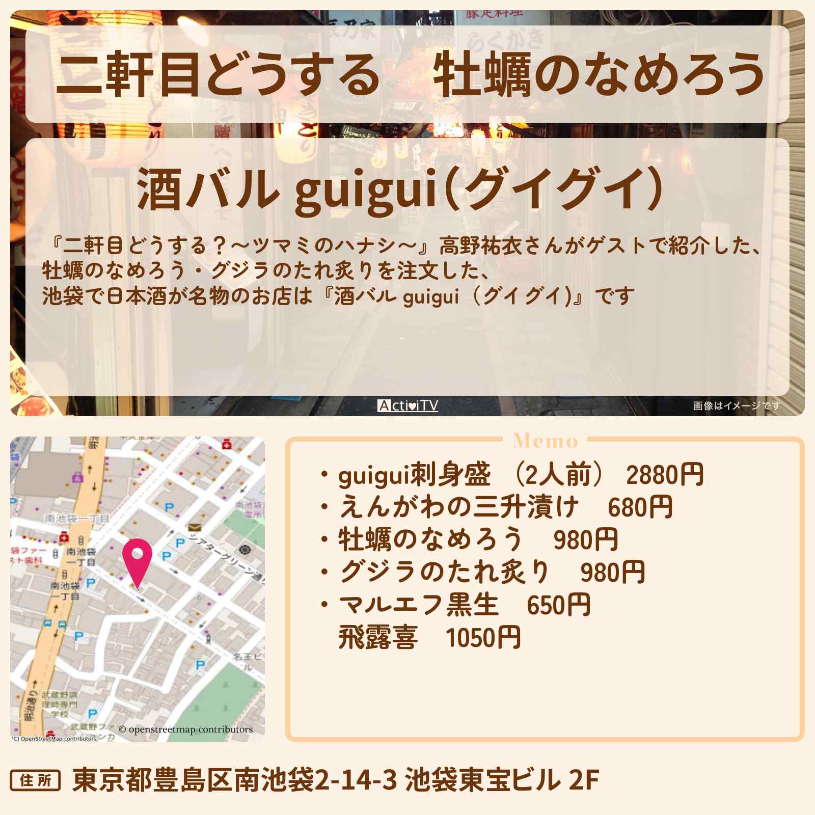 こちらは『酒バル guigui(池袋東口/居酒屋)』のお店ページです。実名でのオススメが2件集まっています。Rettyで食が好きなグルメな人たちからお店を探そう!…