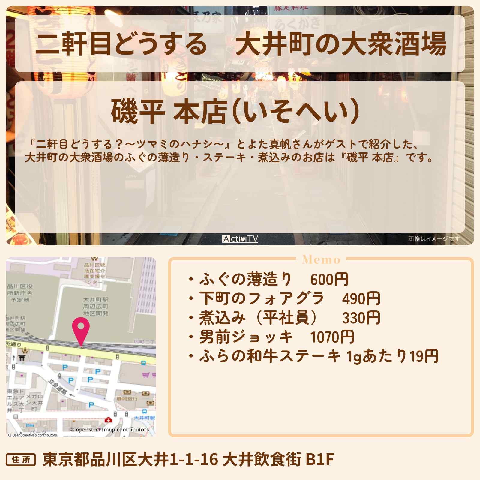 ステーキ・煮込み・ふぐの薄造り 大井町駅「磯平 本店(いそへい)」
