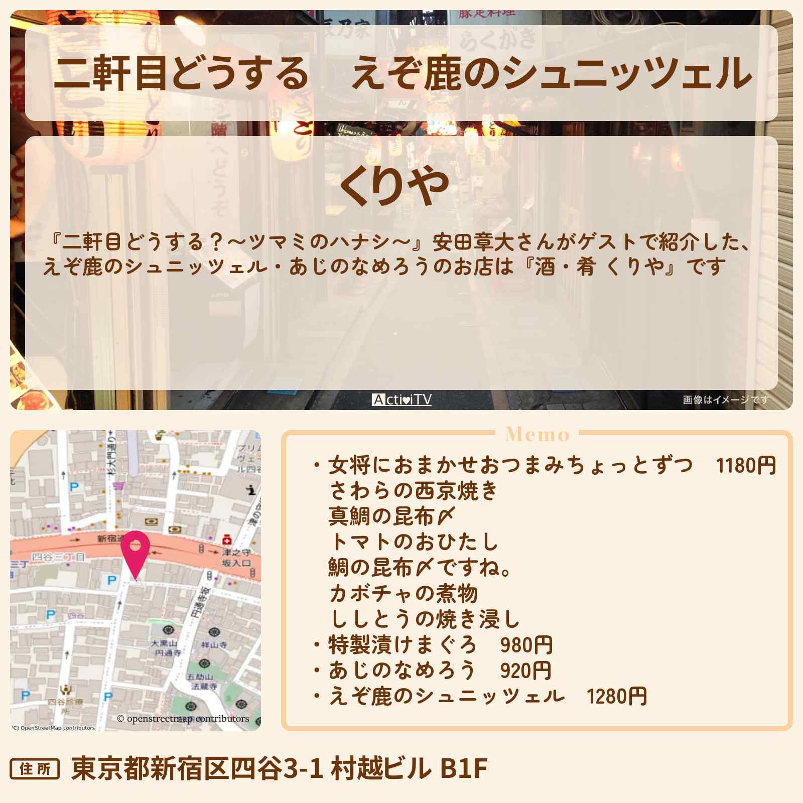 えぞ鹿・あじのなめろう 四谷三丁目駅「くりや」