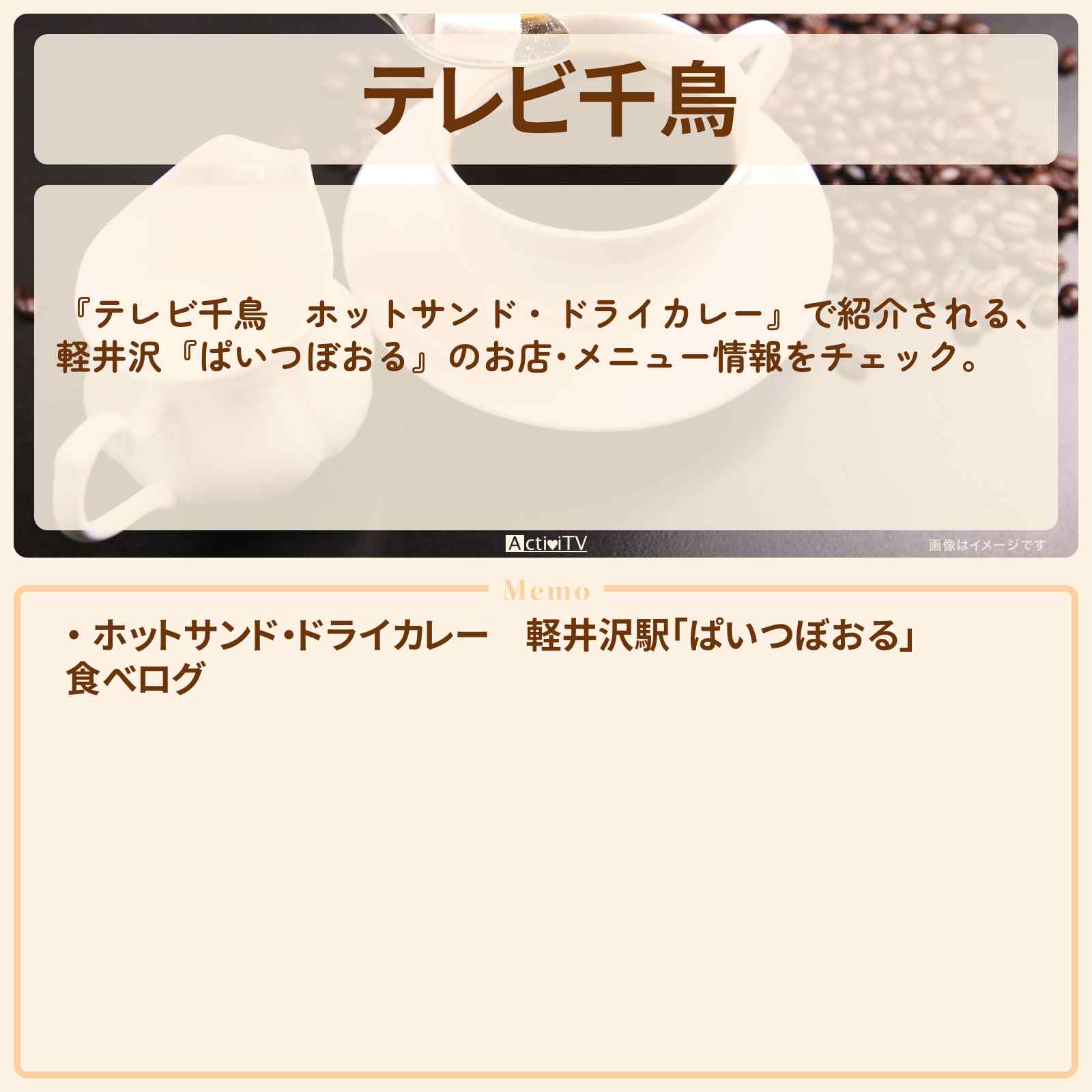 2023年1月19日放送の【テレビ千鳥 ホットサンド・ドライカレー】で紹介される、軽井沢『ぱいつぼおる』のお店・メニュー情報をチェック。