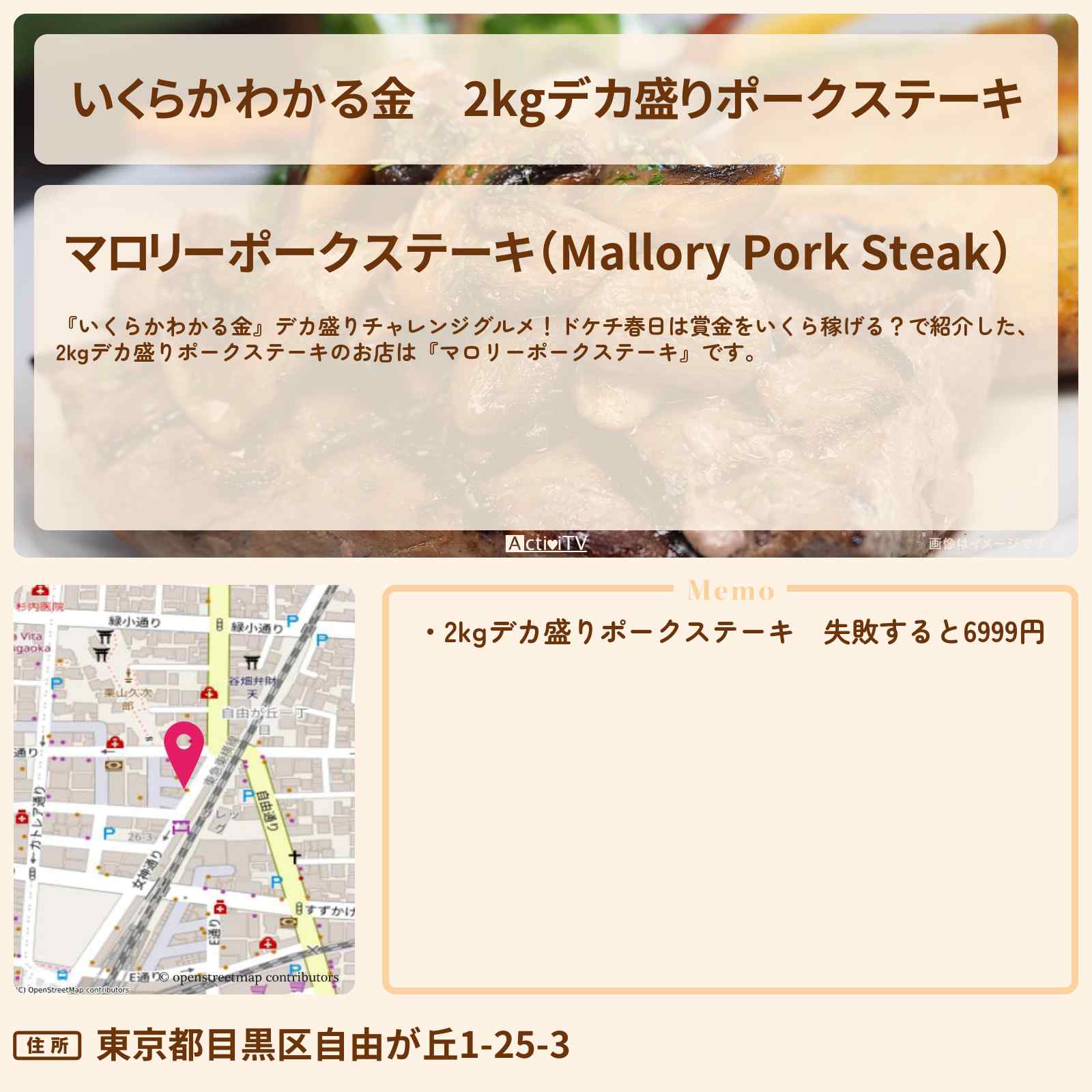 自由が丘駅「マロリーポークステーキ(Mallory Pork Steak)」