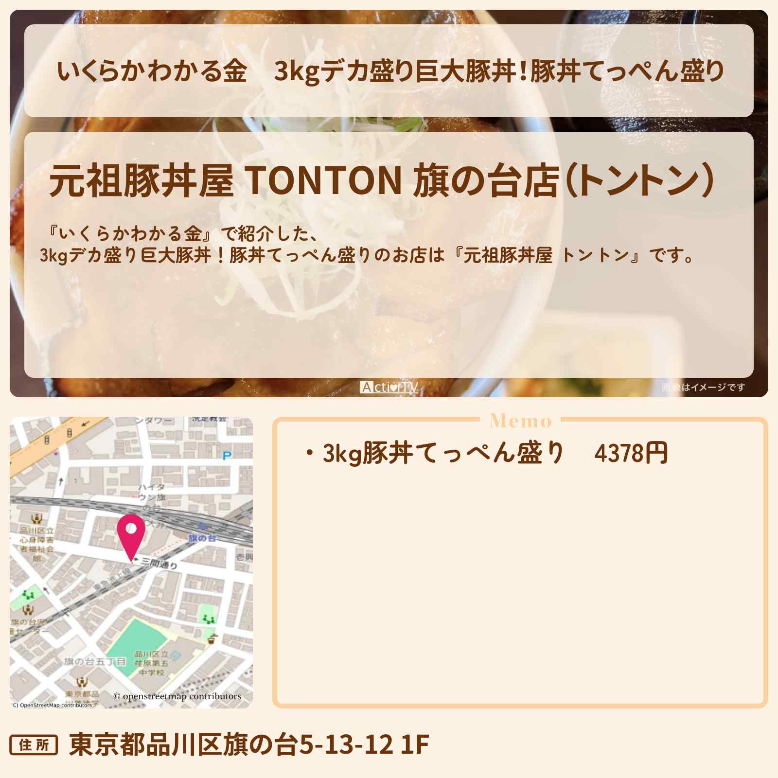 3kgデカ盛り巨大豚丼 旗の台駅「元祖豚丼屋 TONTON 旗の台店(トントン)」
