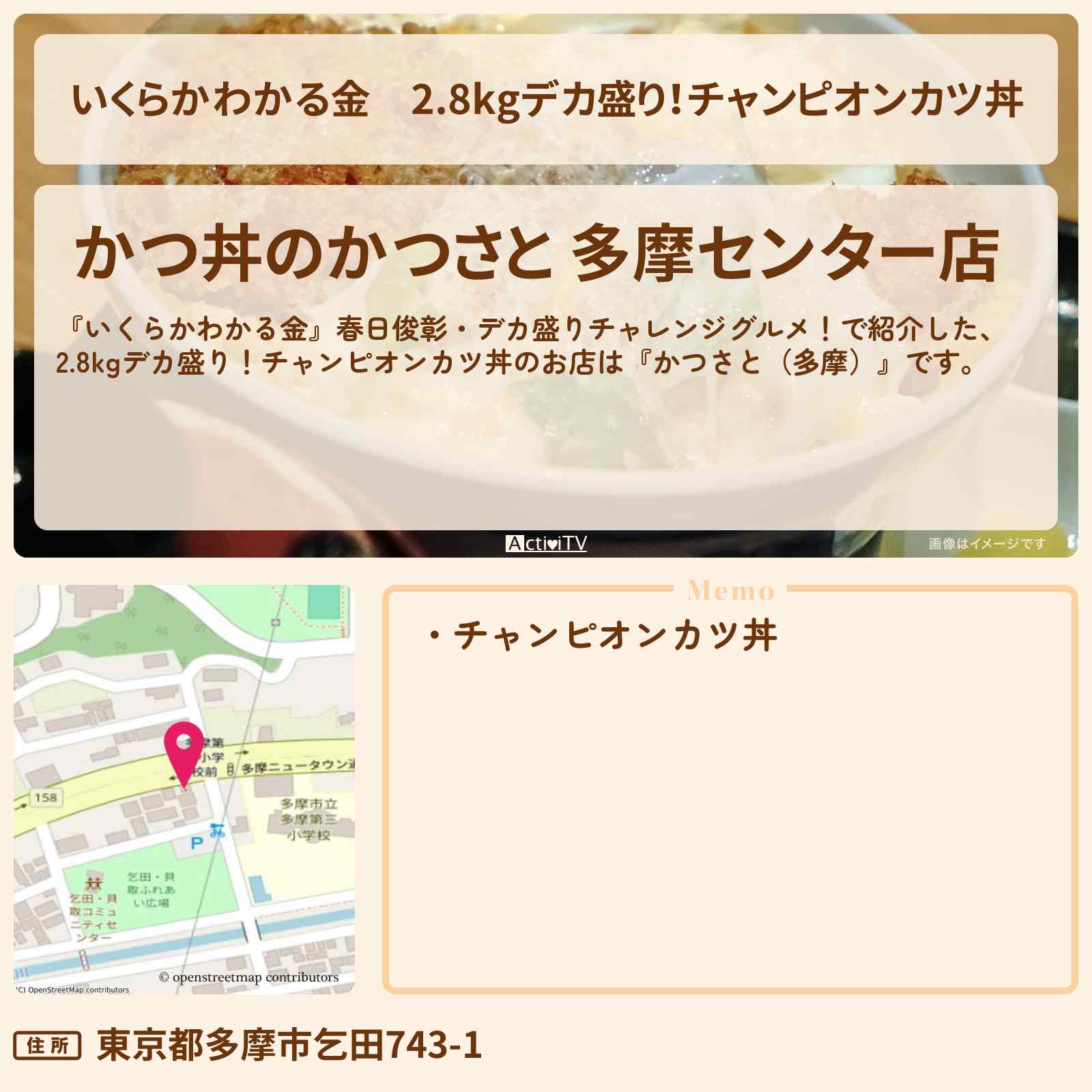 2.8kgデカ盛り!チャンピオンカツ丼「かつ丼のかつさと 多摩センター店」