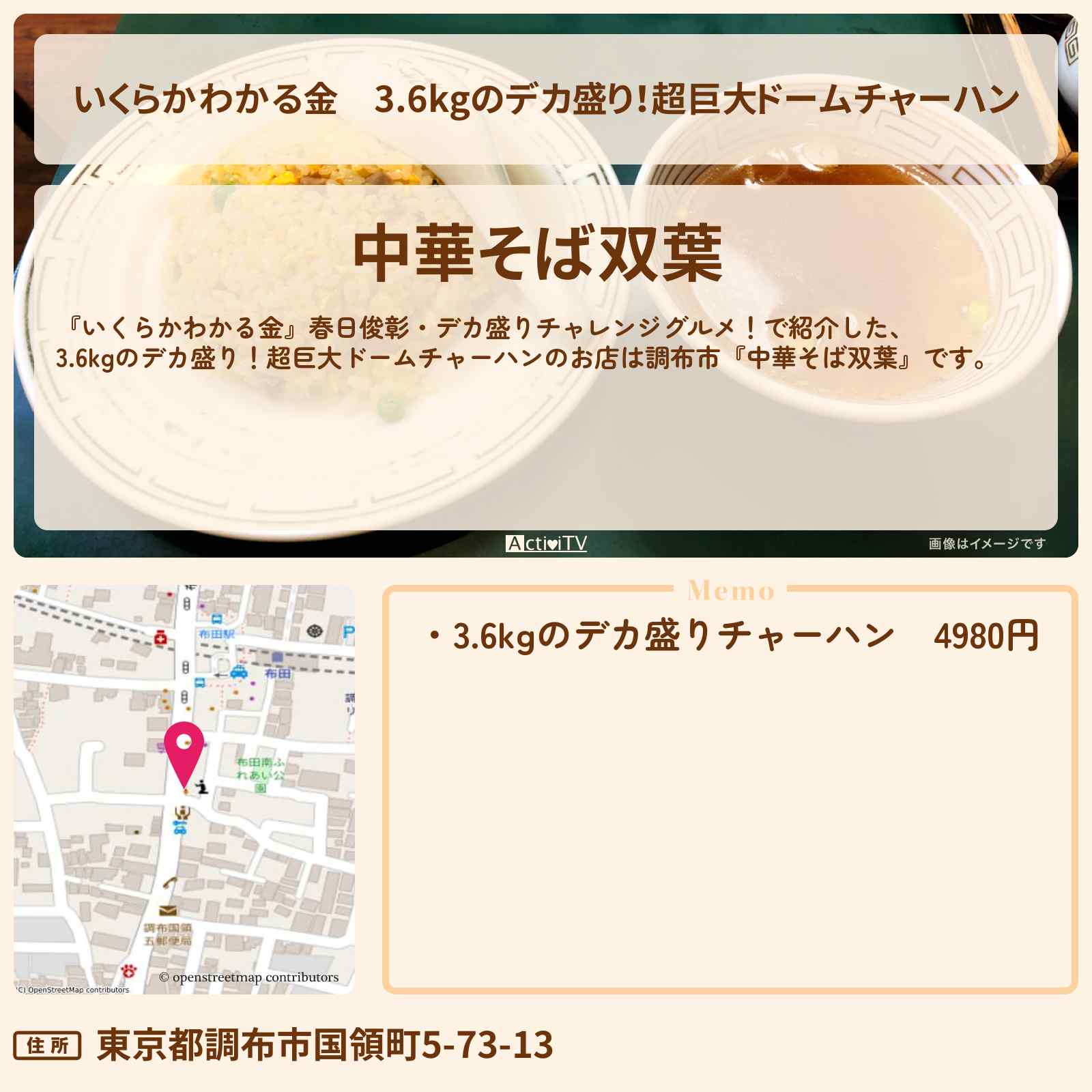 3.6kgのデカ盛りチャーハン 布田駅「中華そば双葉」