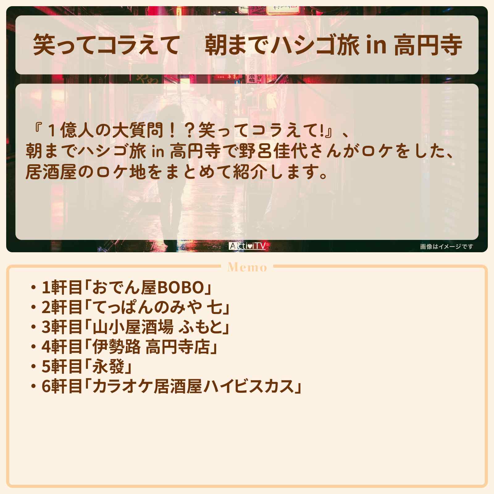 | 住所 | 東京都杉並区高円寺北3-21-20 |