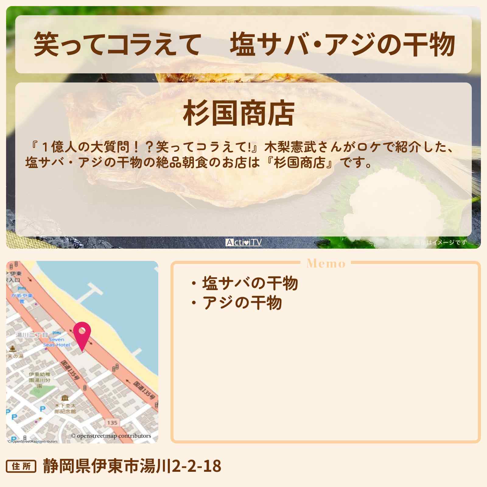 塩サバ・アジの干物 伊東駅「杉国商店」